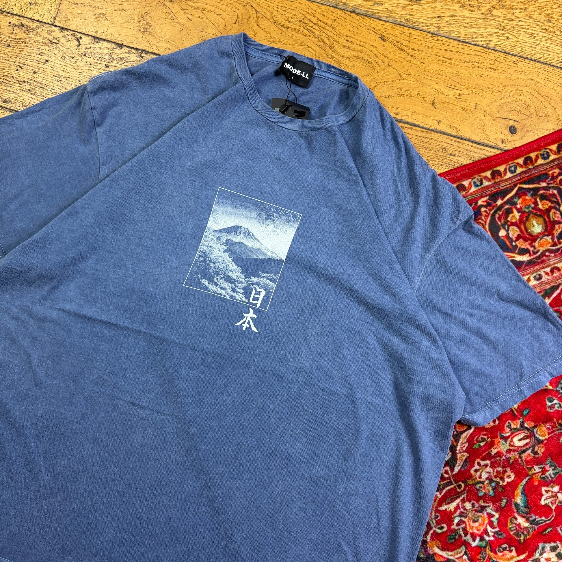 Mt Fuji Blue Japan Koi Fish Graphic T-Shirt - XL