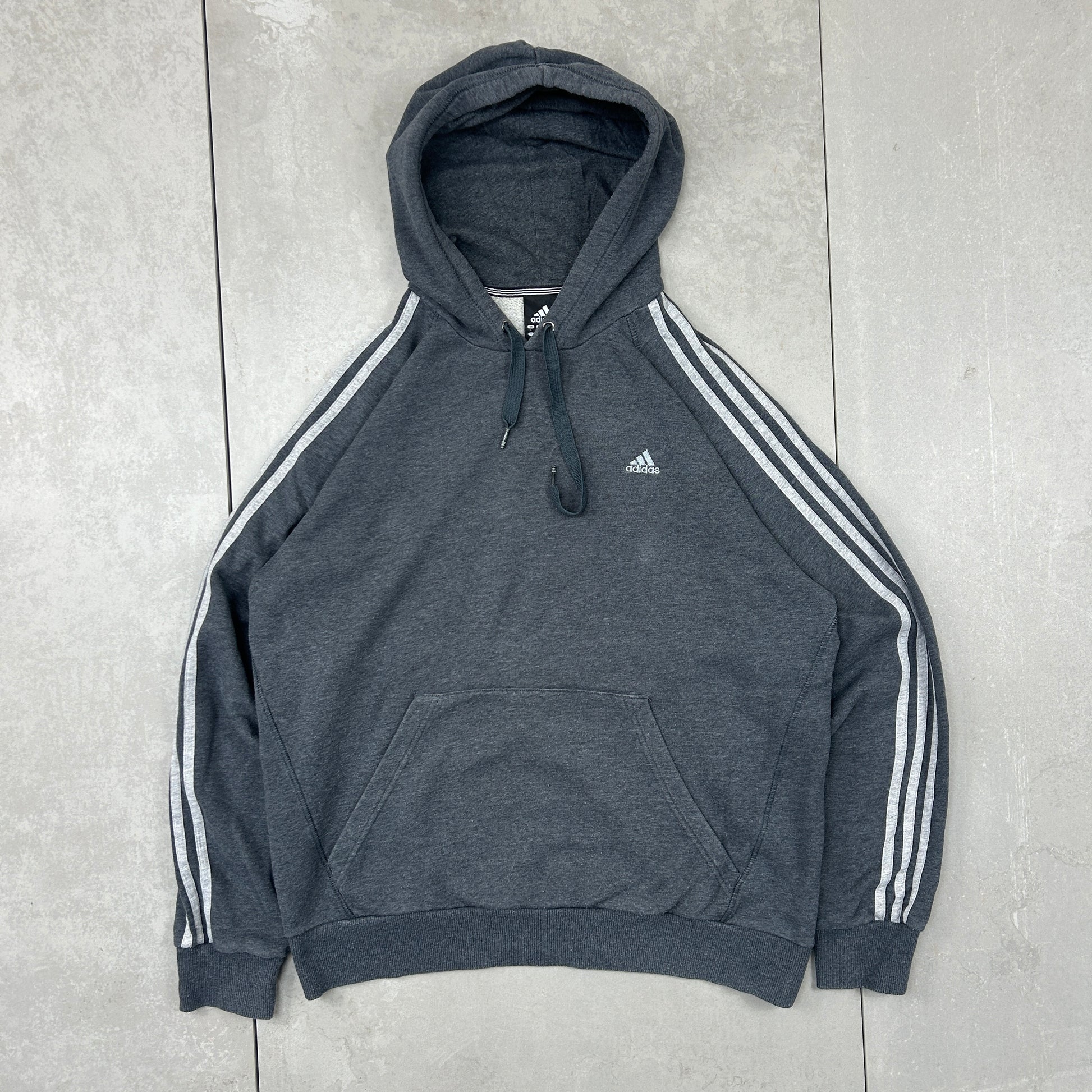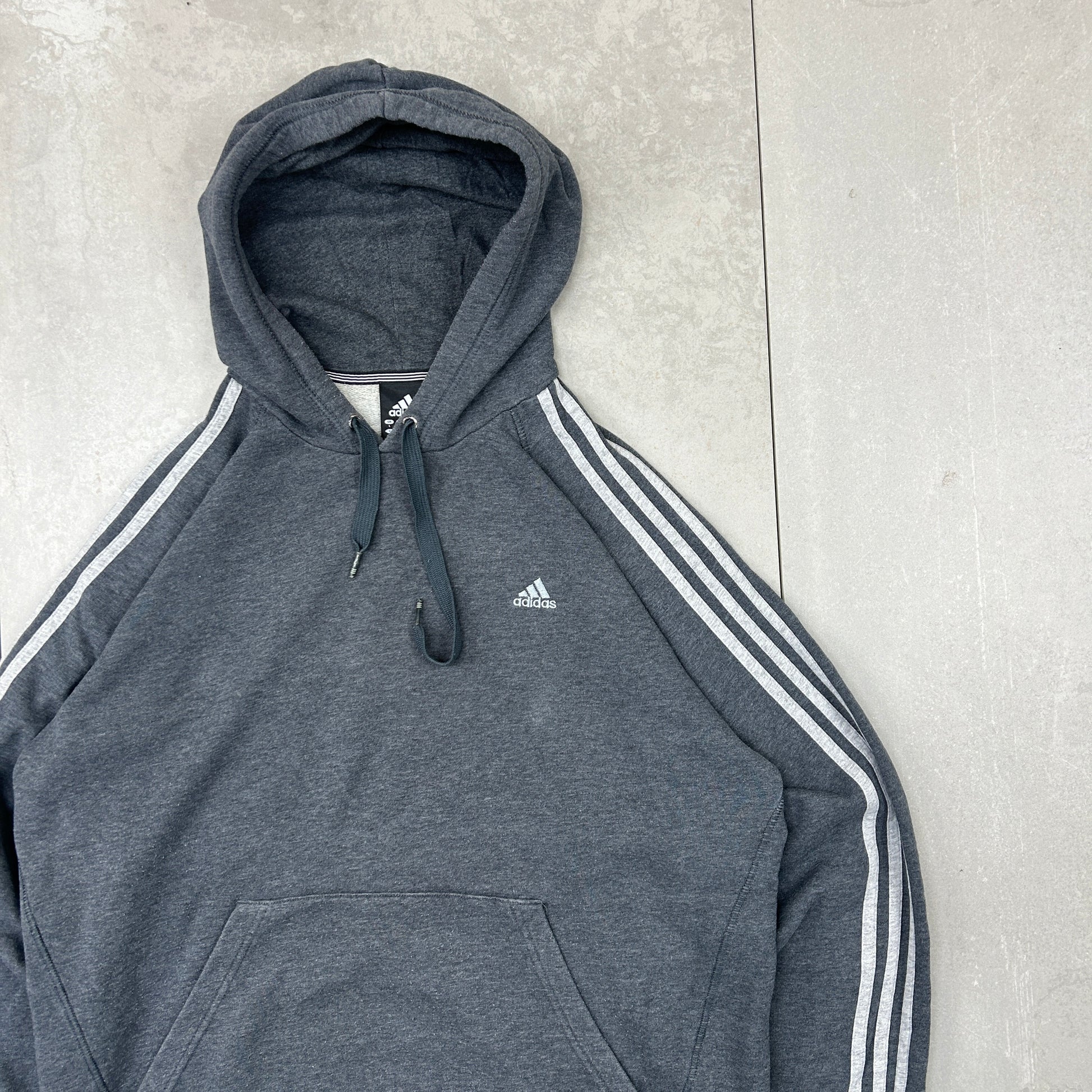 Vintage 00s Adidas Embroidered Grey Hoodie Sweatshirt - L