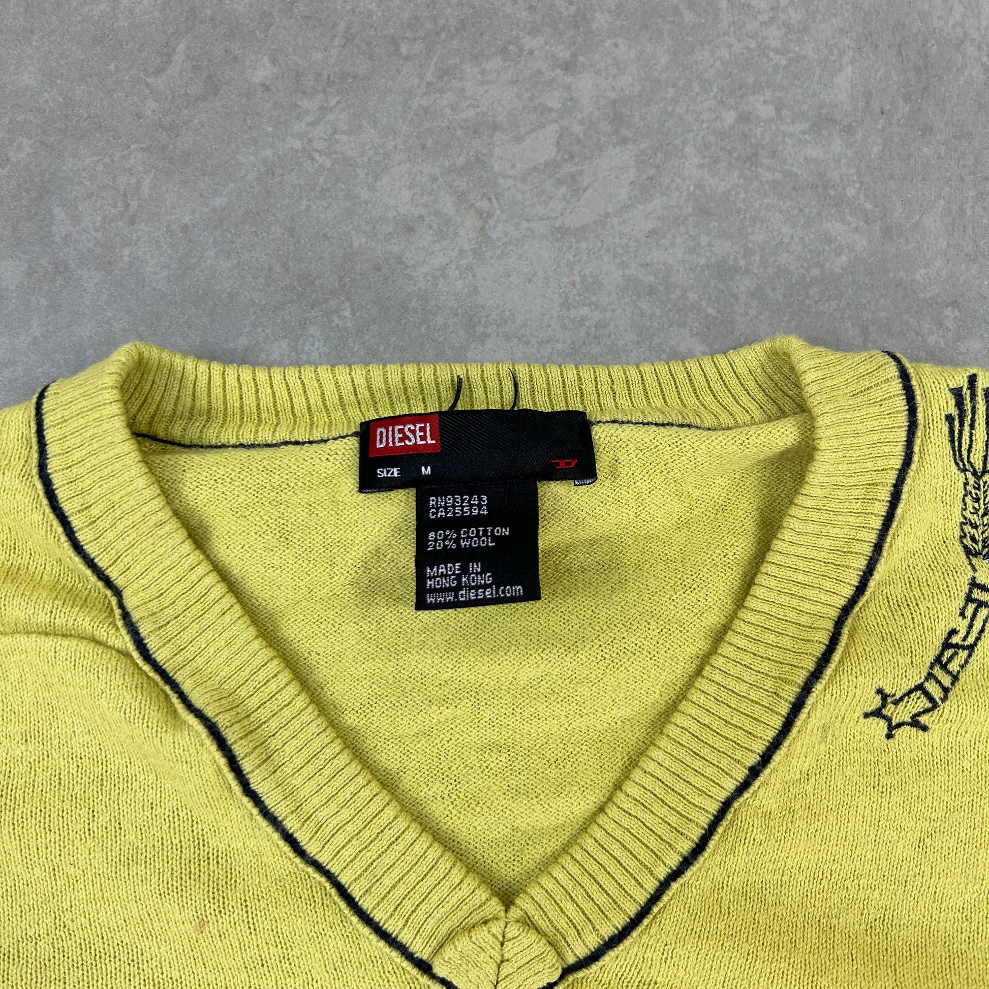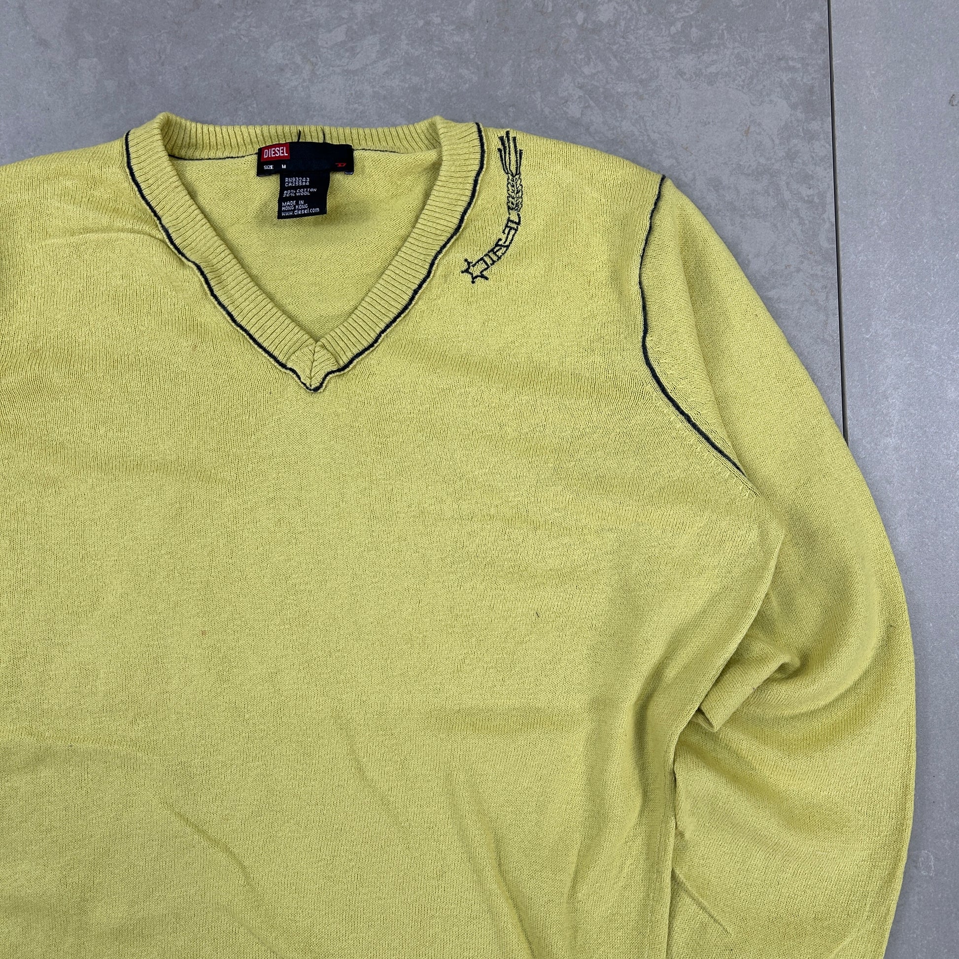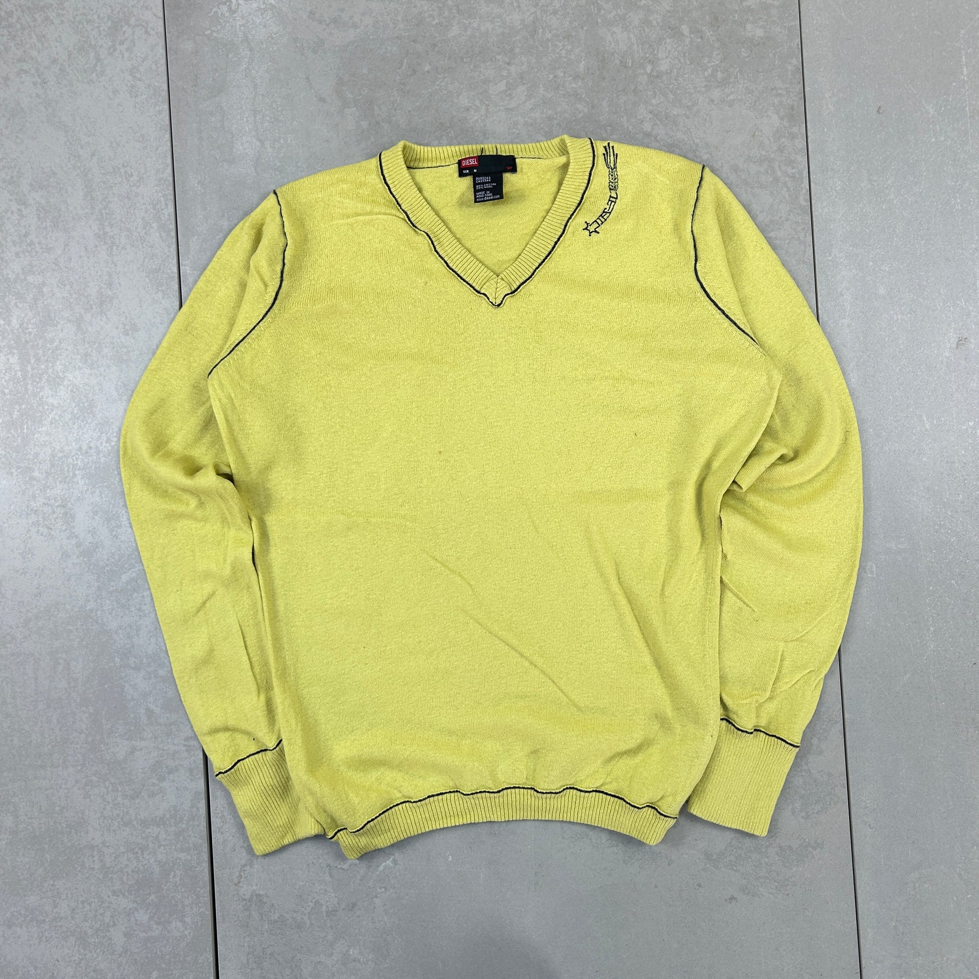 Vintage 00s Diesel Knit Green Yellow Jumper Embroidered Sweatshirt - S