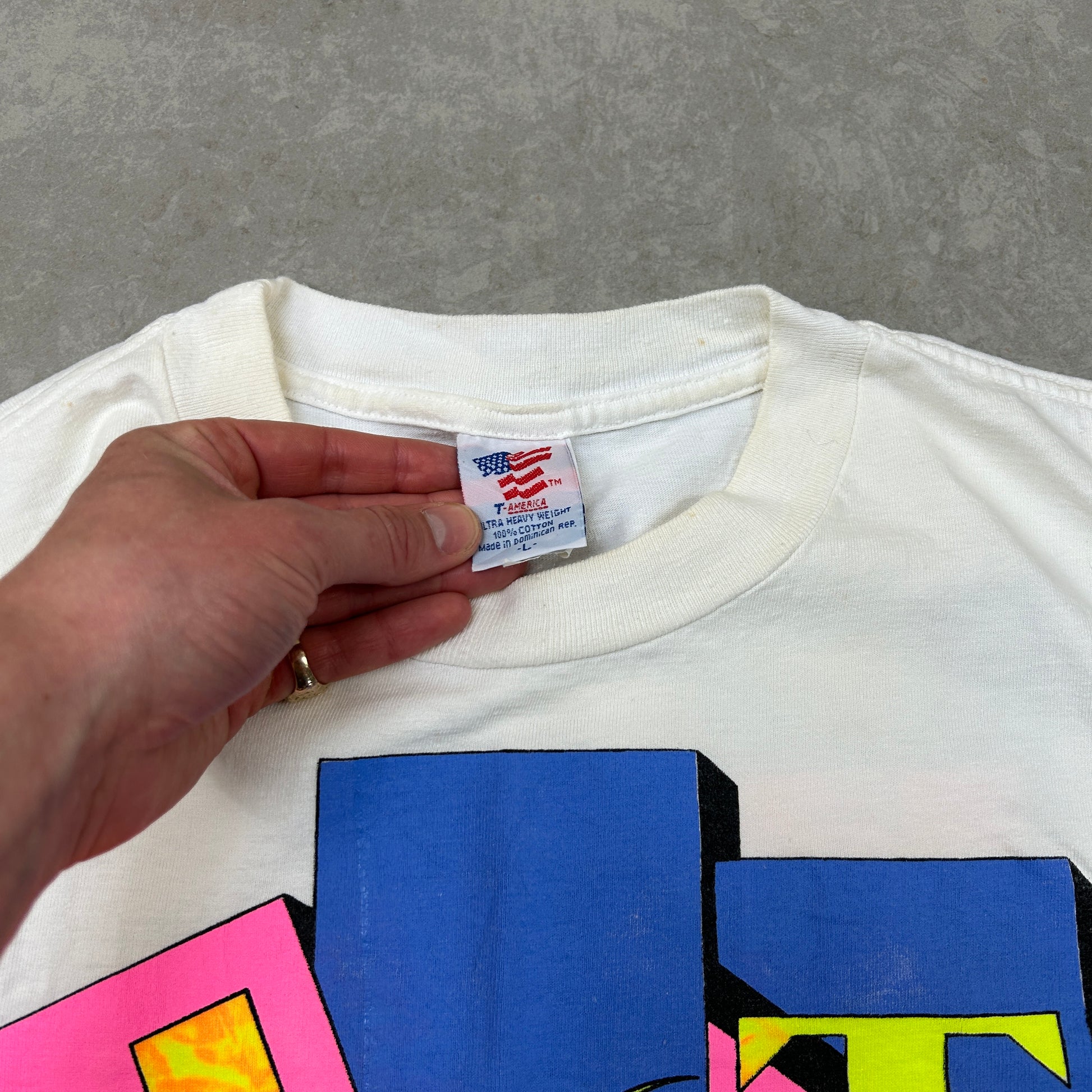 Vintage 1990 Single Stitch Graphic White T-Shirt - M