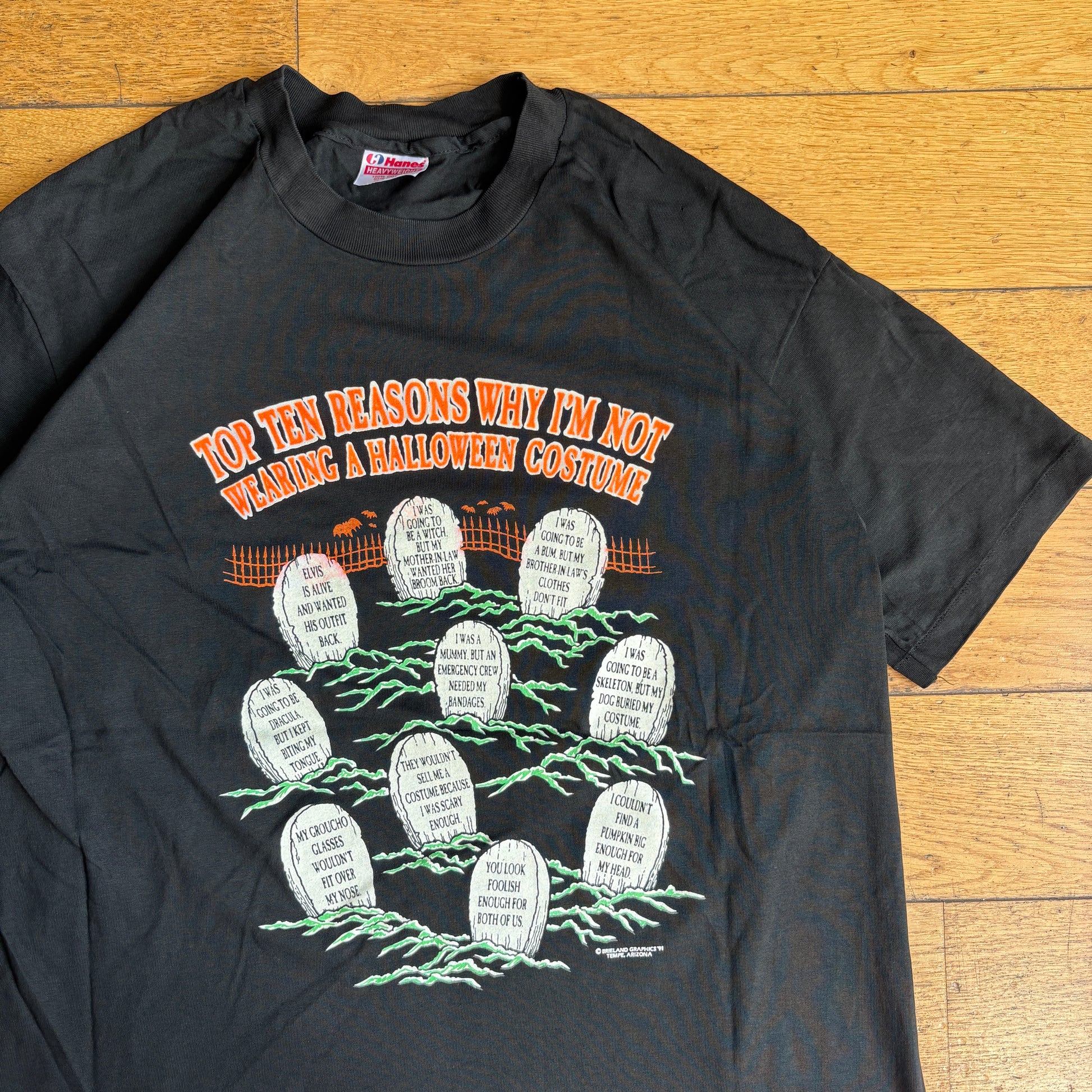 Vintage 1991 Funny Halloween Single Stitch Black Graphic T-Shirt - L