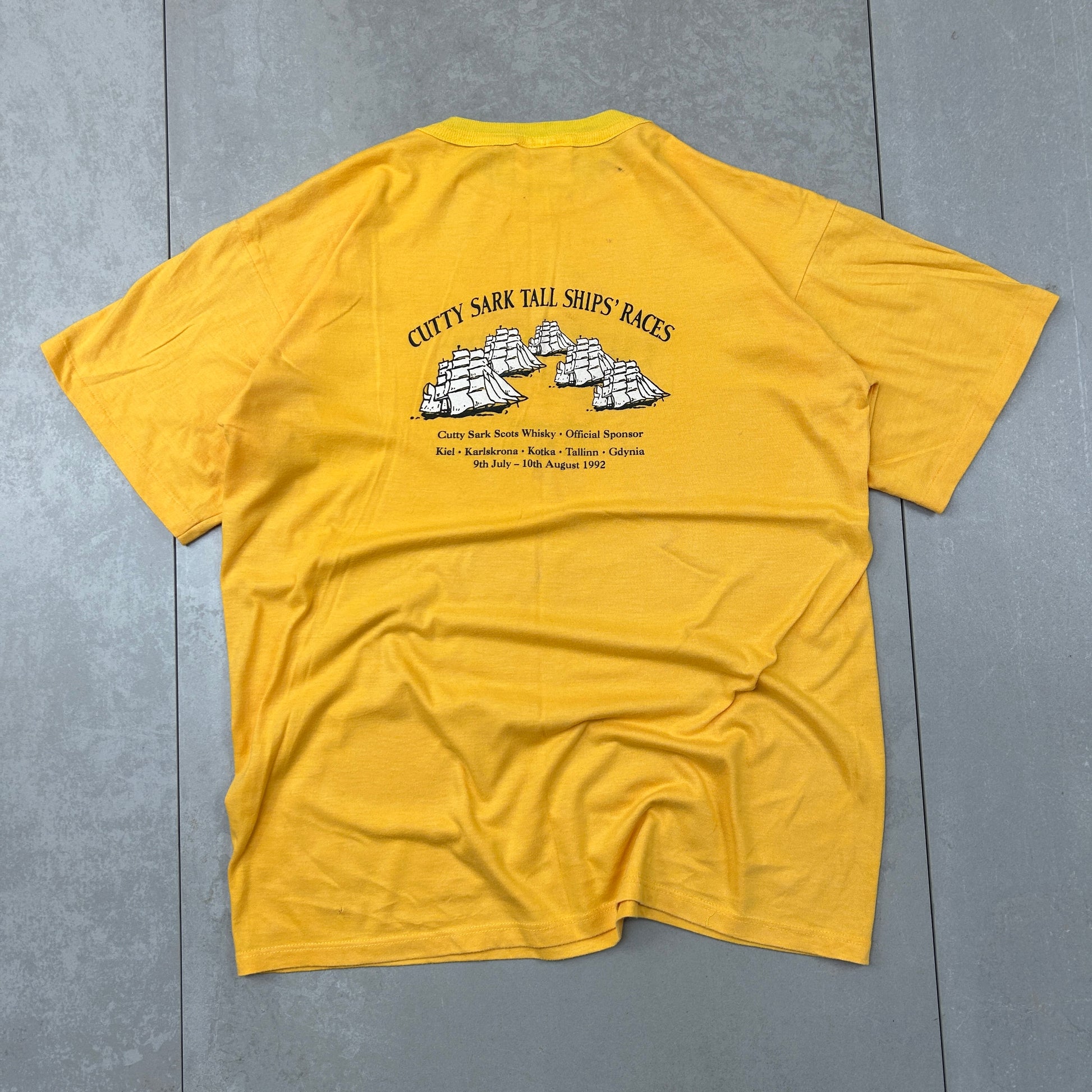 Vintage 1992 Cutty Sark Whiskey Single Stitch Yellow Graphic T-Shirt - M