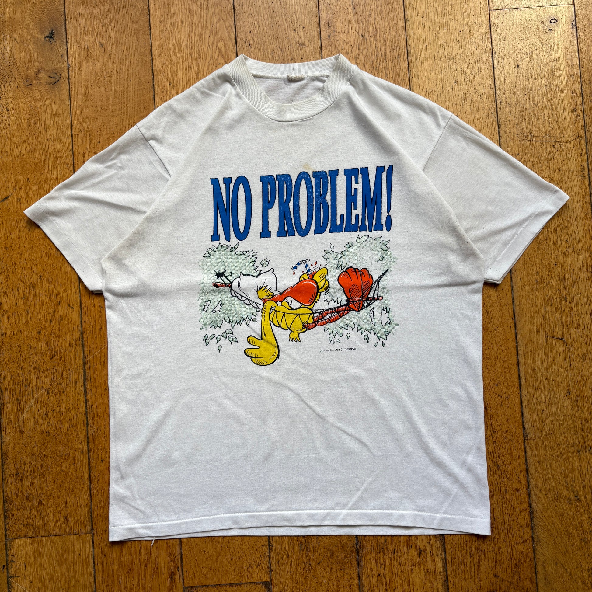 Vintage 1995 No Problem Single Stitch White Graphic T-Shirt - S/M
