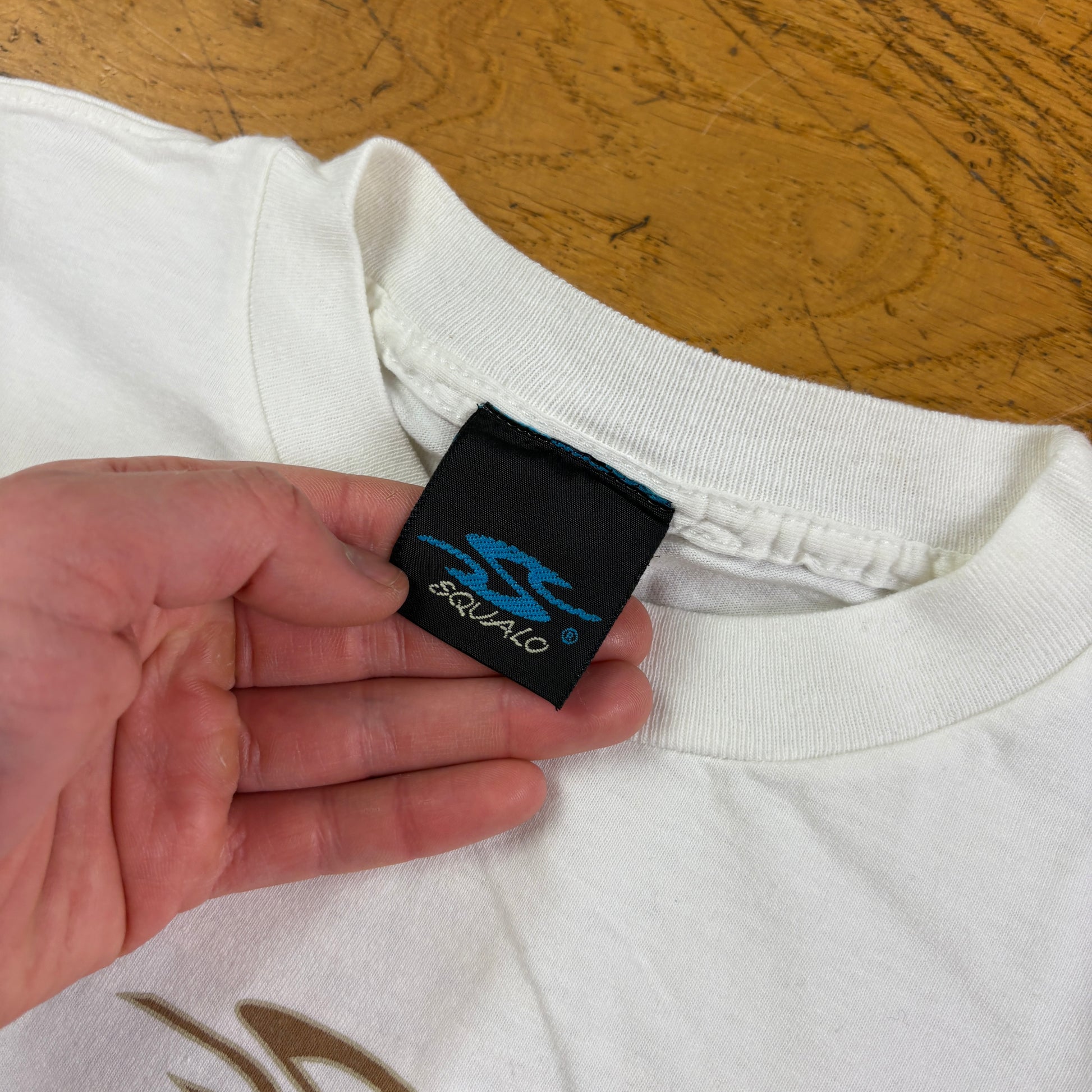 Vintage 1999 Squalo Surfwear White Single Stitch Graphic T-Shirt - XS