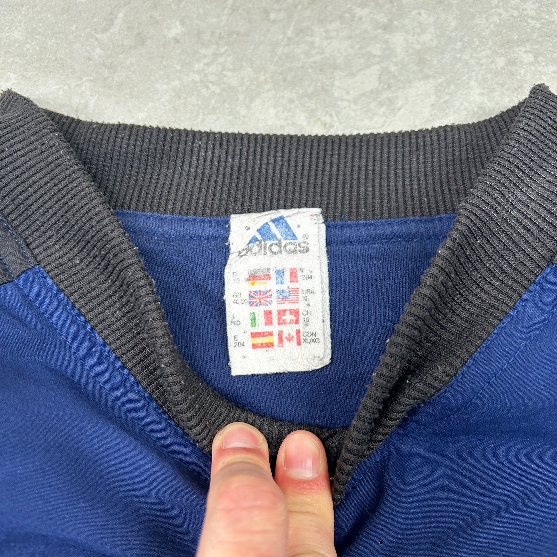 Vintage 90s Adidas Blue Embroidered Windbreaker Pullover Sweatshirt - XL
