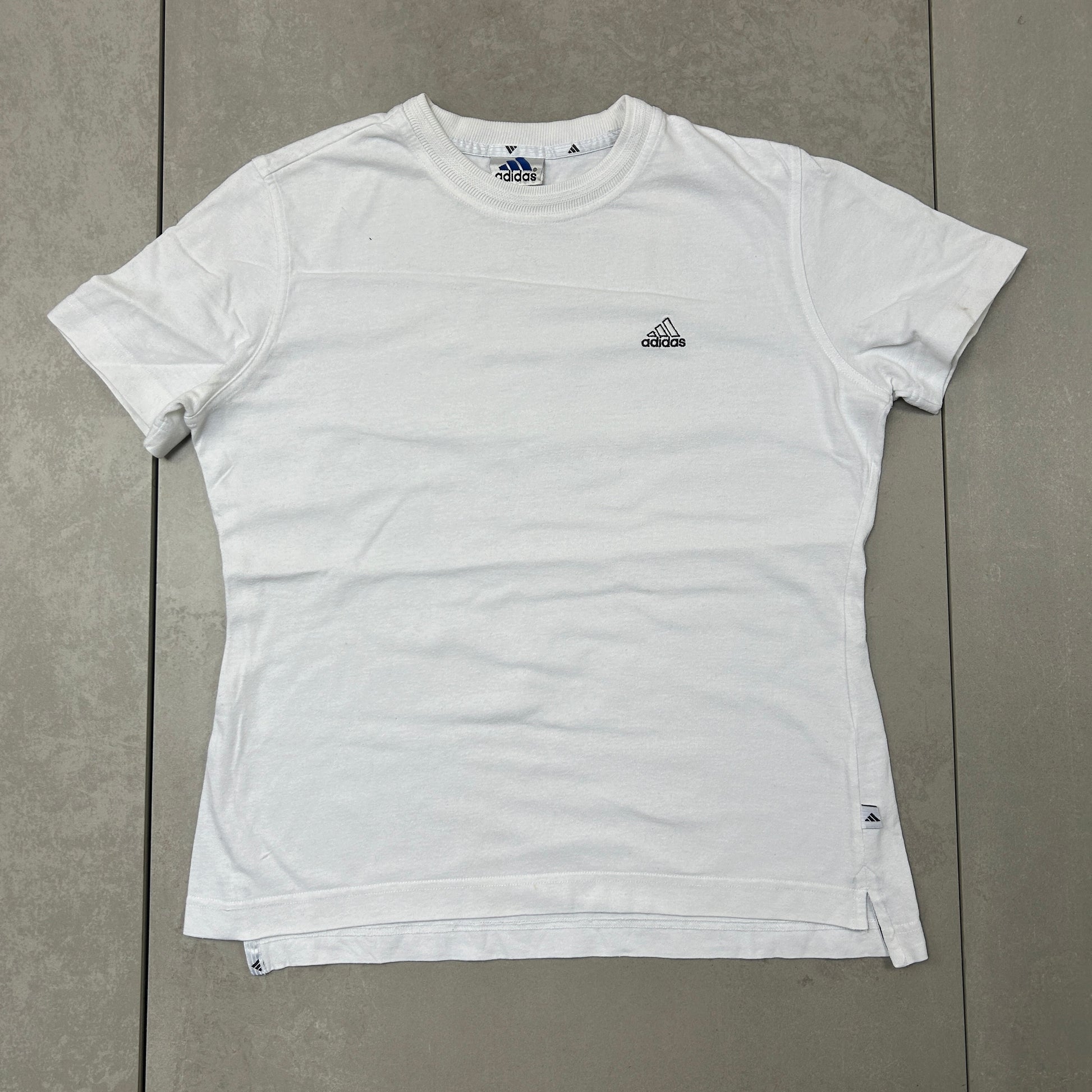 Vintage 90s Adidas White Embroidered Womens T-Shirt - Size 14