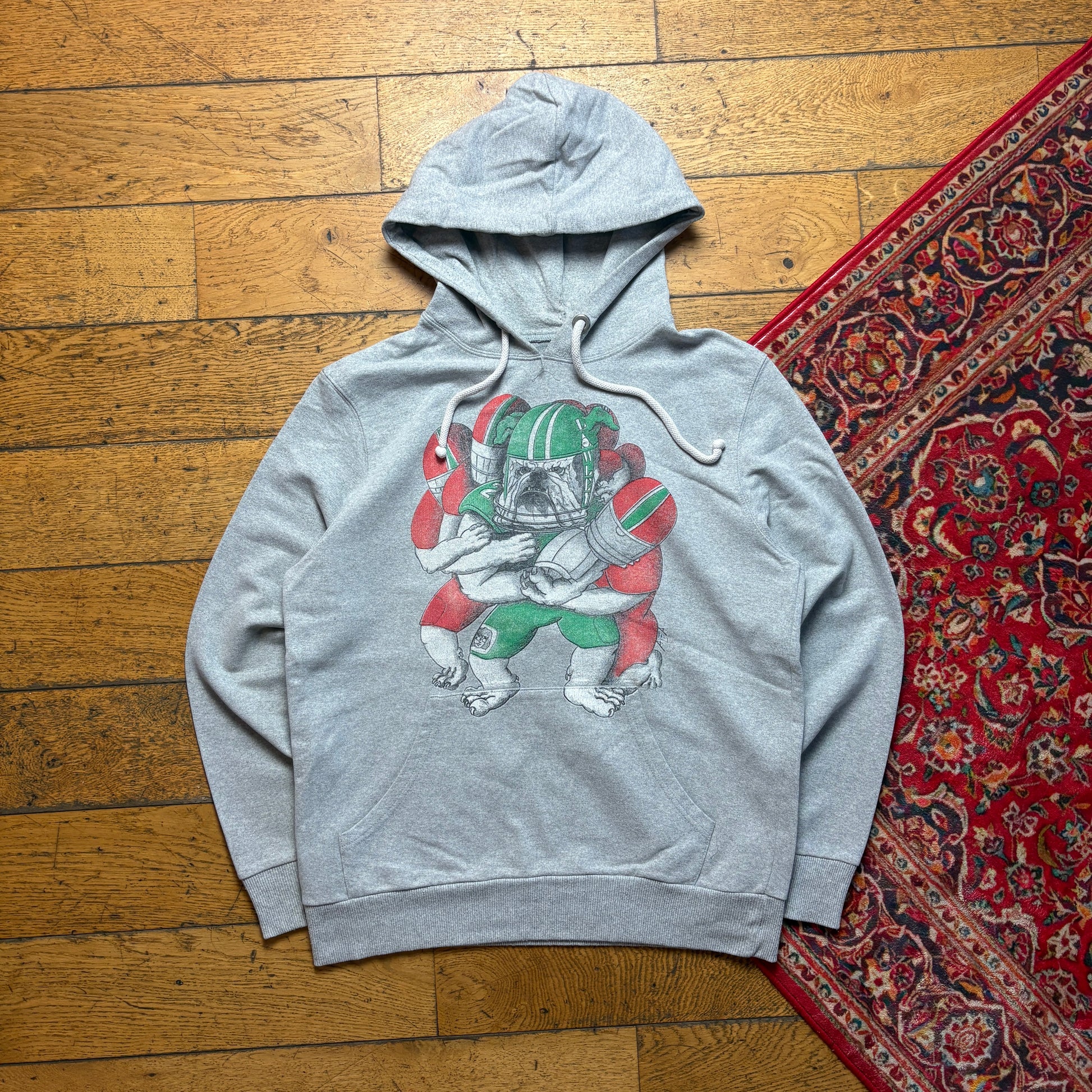 Vintage 90s American Football Bulldog Grey Hoodie Sweatshirt - S