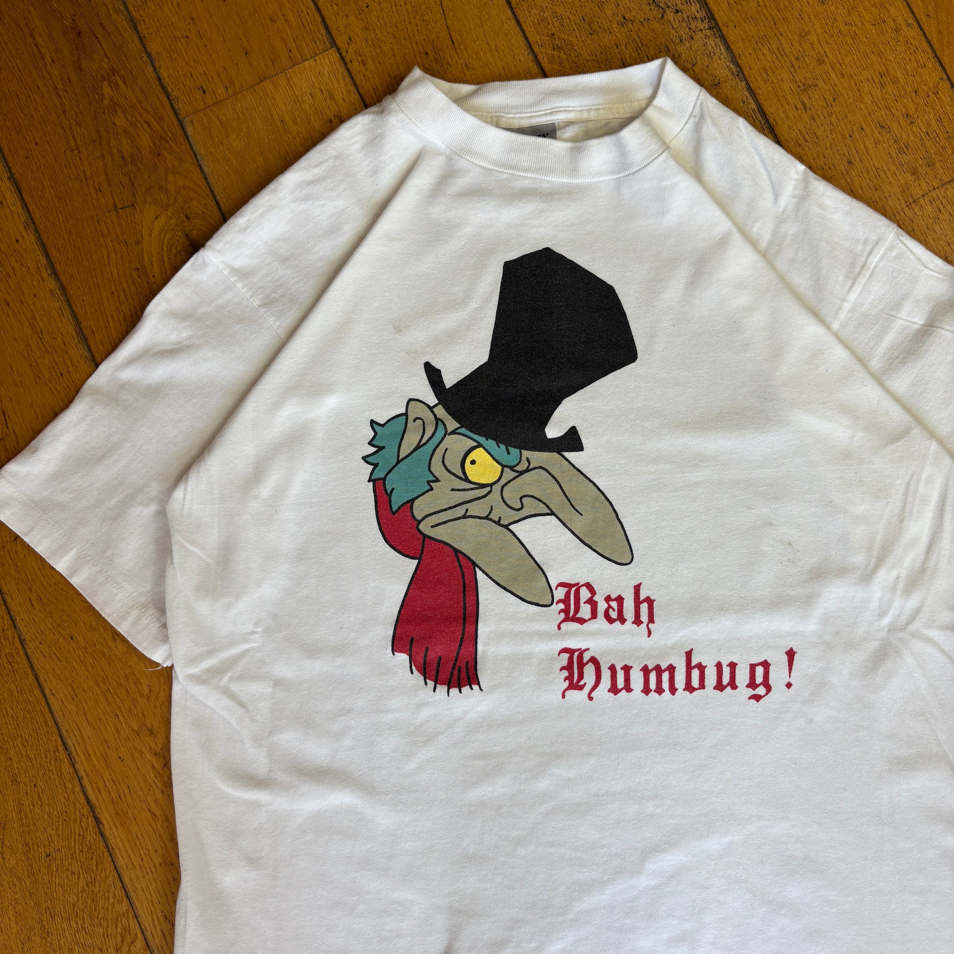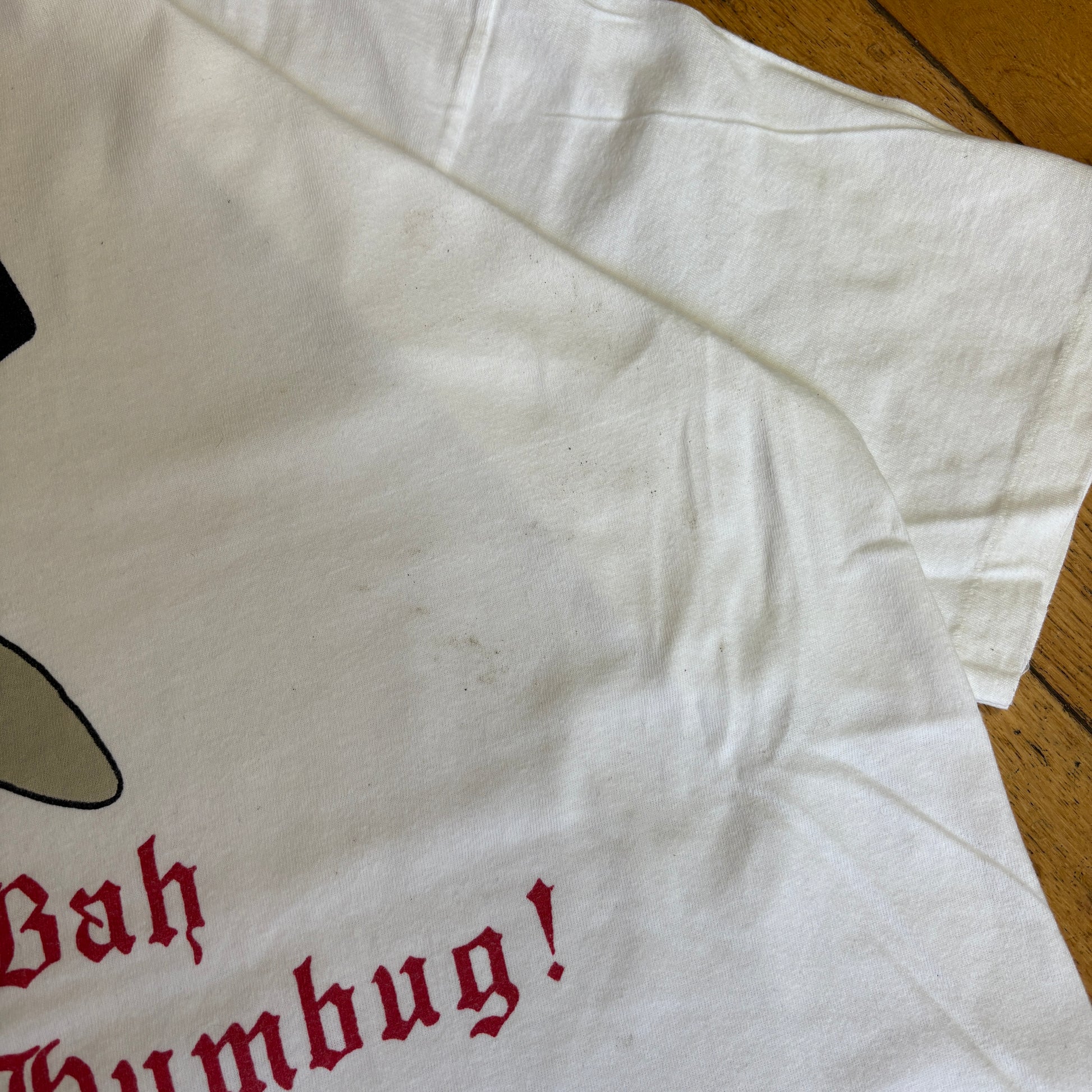 Vintage 90s Bah Humbug Christmas White Single Stitch Graphic T-Shirt - M