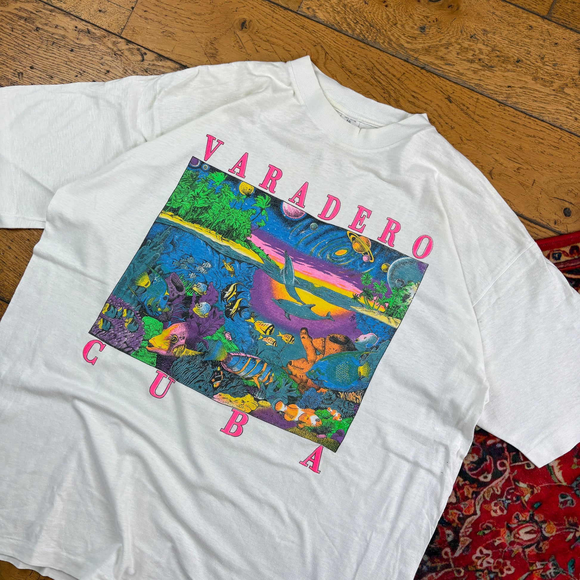 Vintage 90s Cuba White Single Stitch Graphic T-Shirt - XL