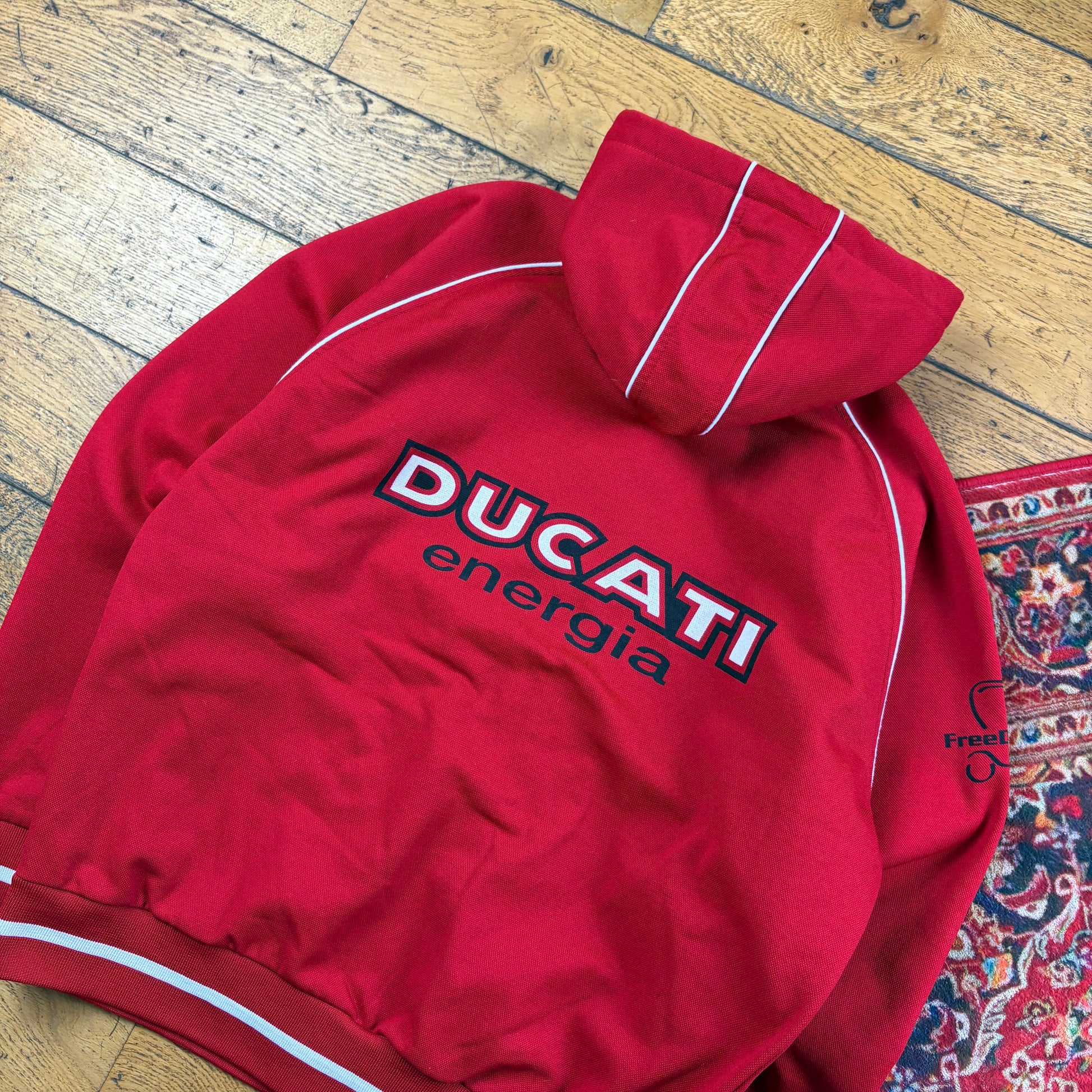 Vintage 90s Ducati Motorbike Red Zip Hoodie Sweatshirt - M