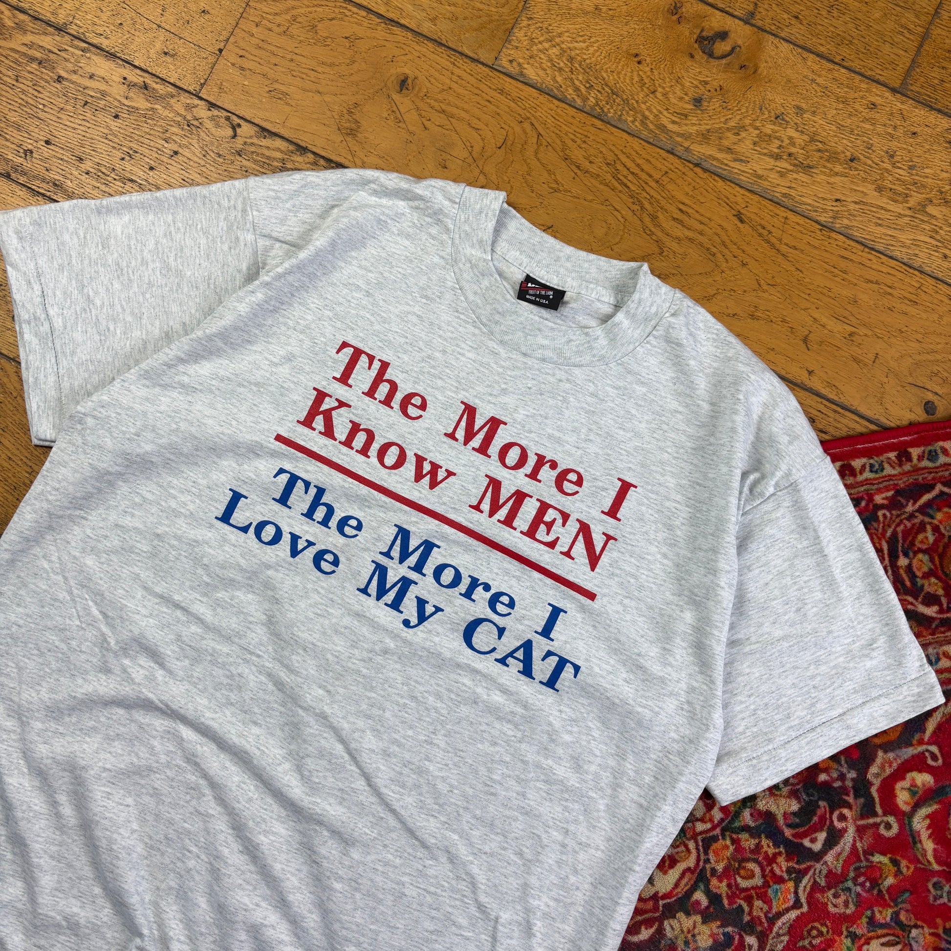 Vintage 90s Funny Cat Grey Single Stitch Graphic T-Shirt - M