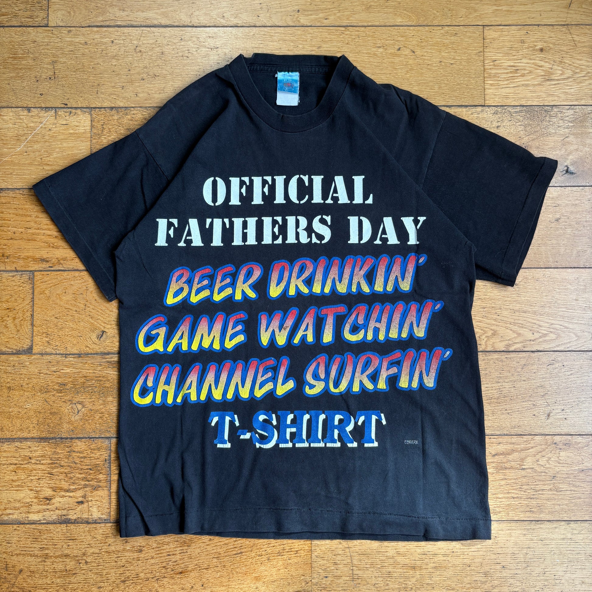Vintage 90s Funny Fathers Day Slogan Single Stitch Black Graphic T-Shirt - M