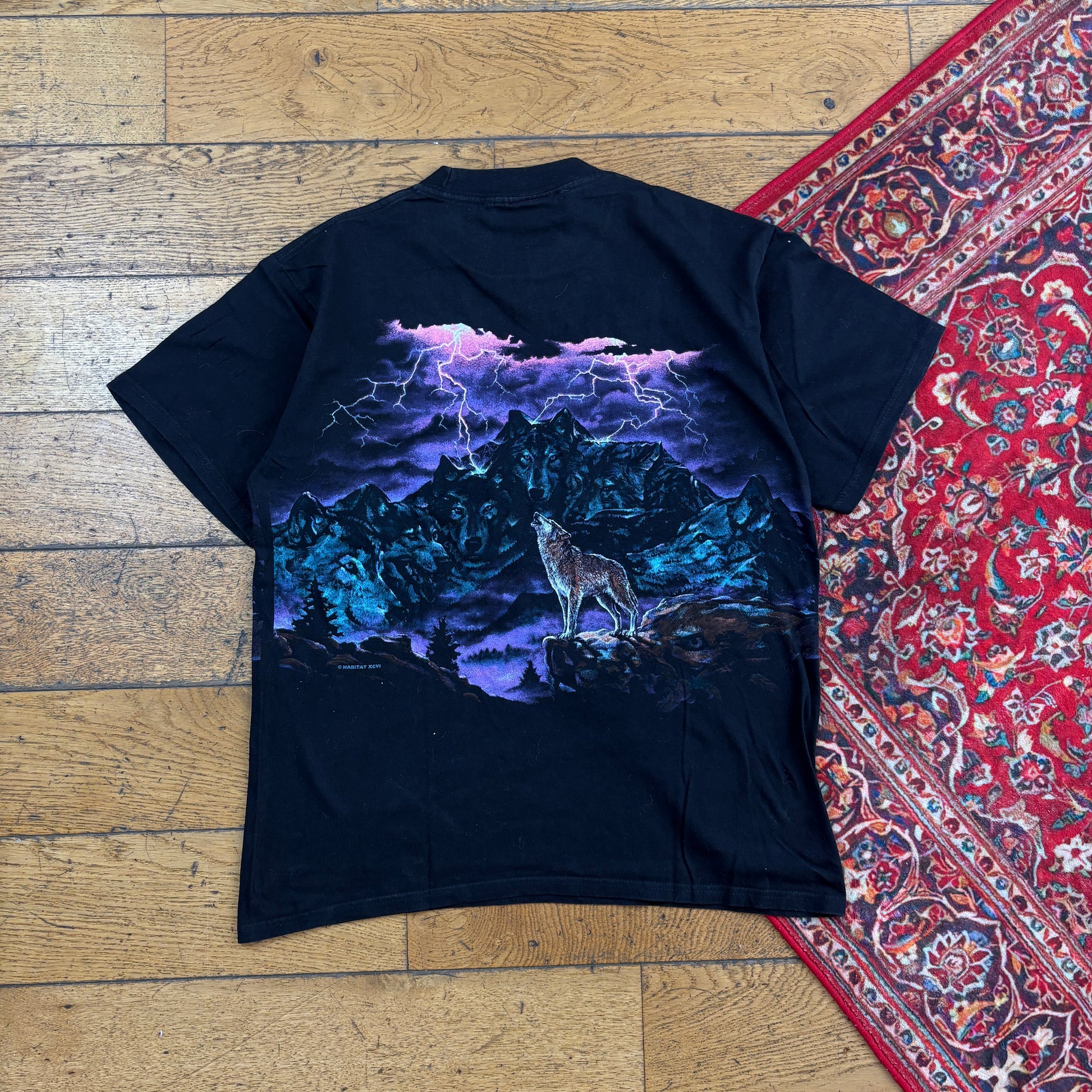 Vintage 90s Habitat Wolf Black Single Stitch Graphic T-Shirt - S