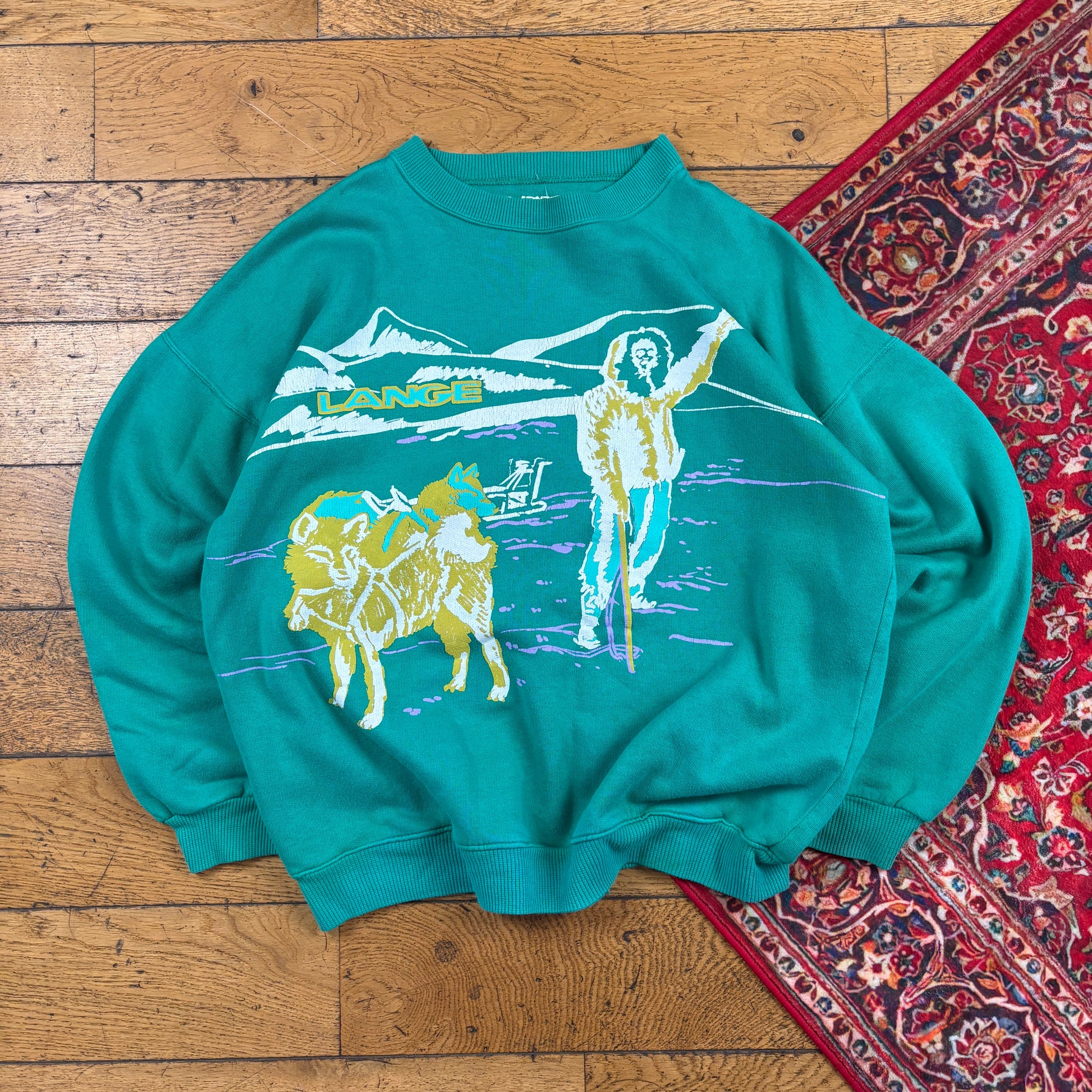 Vintage 90s Lange Skiing Green Graphic Sweatshirt - XL