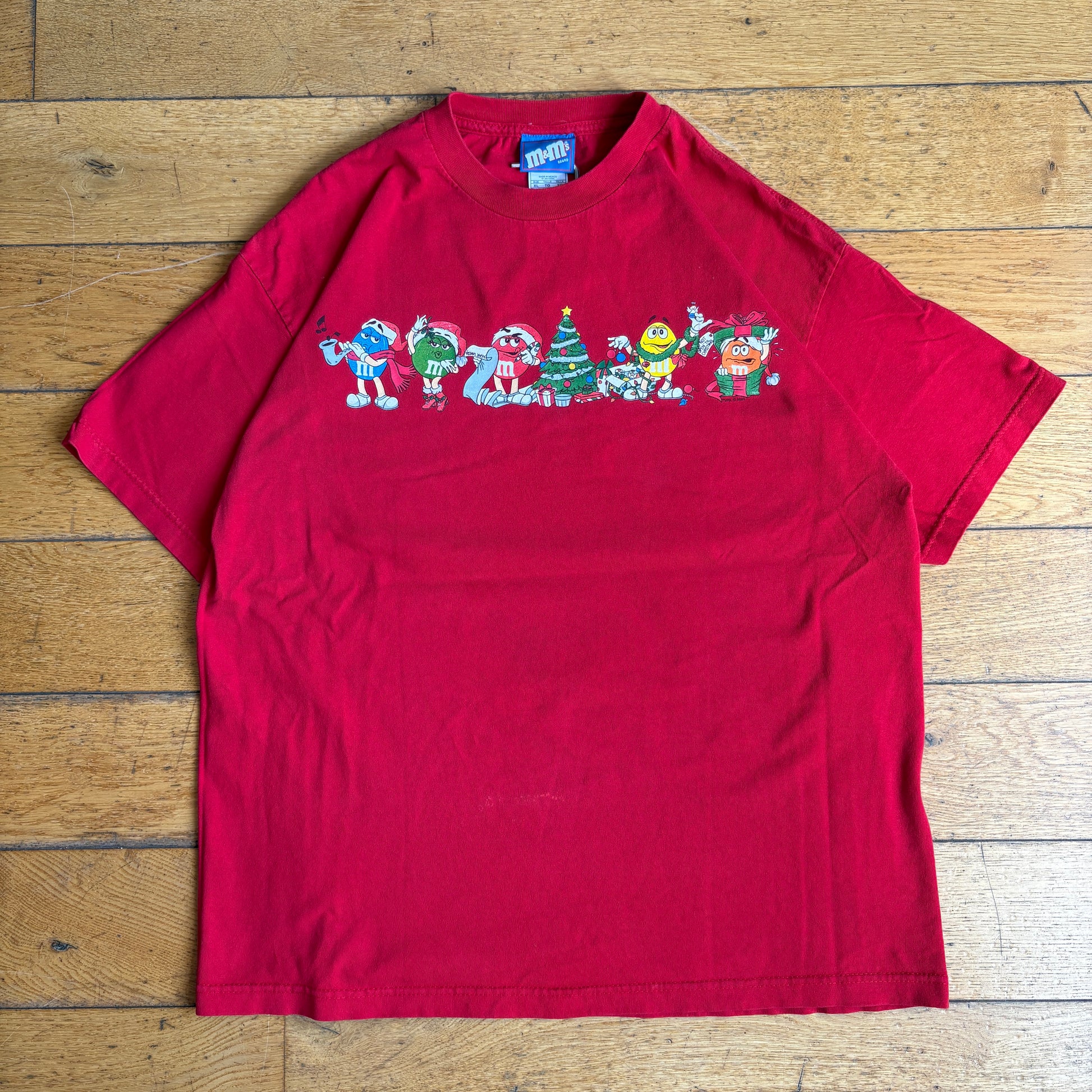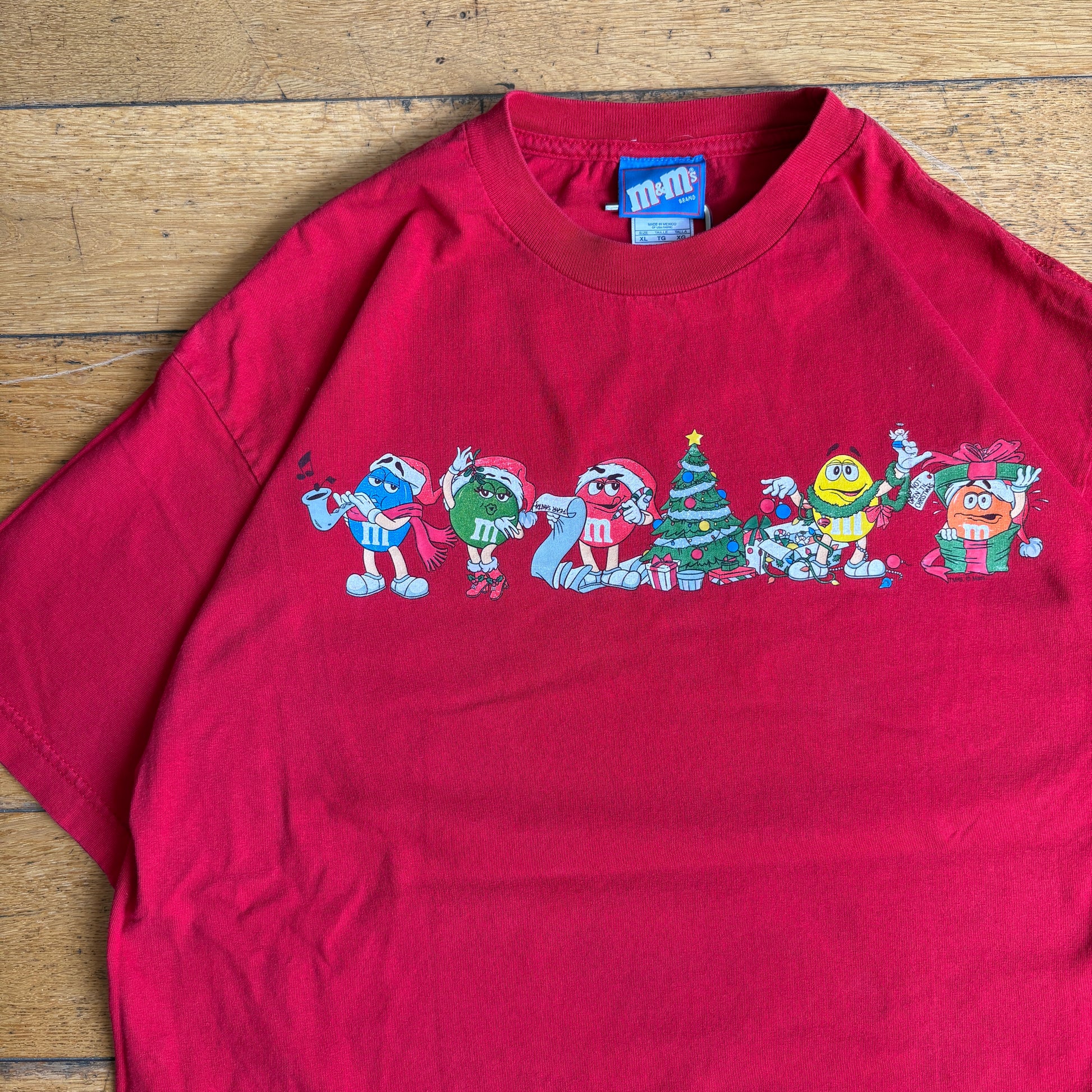 Vintage 90s M&Ms Christmas Single Stitch Red Graphic T-Shirt - L