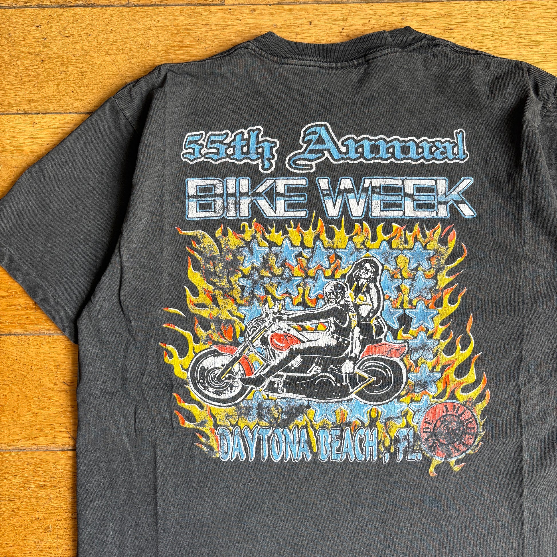 Vintage 90s Motorbike Black Single Stitch Graphic T-Shirt - M/L