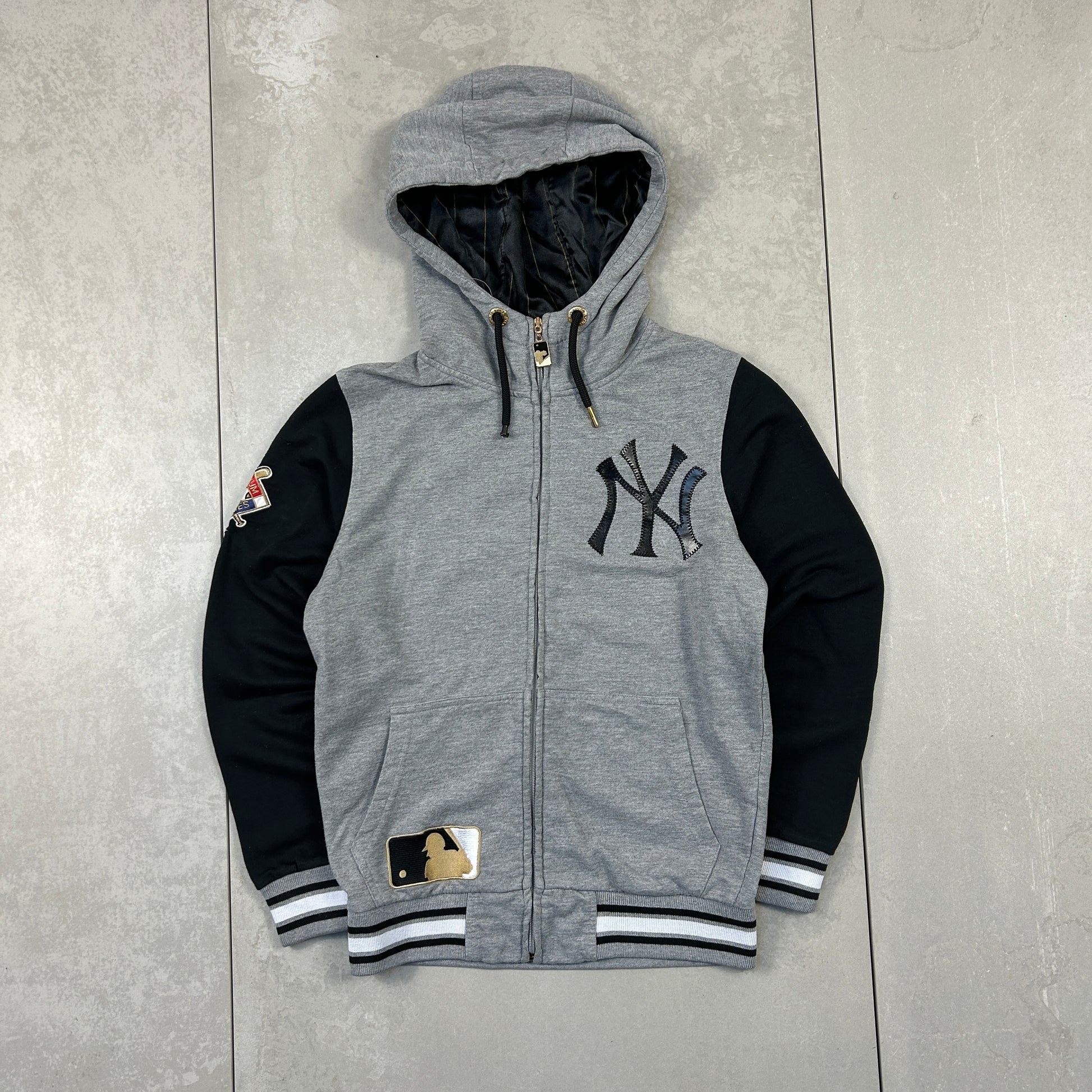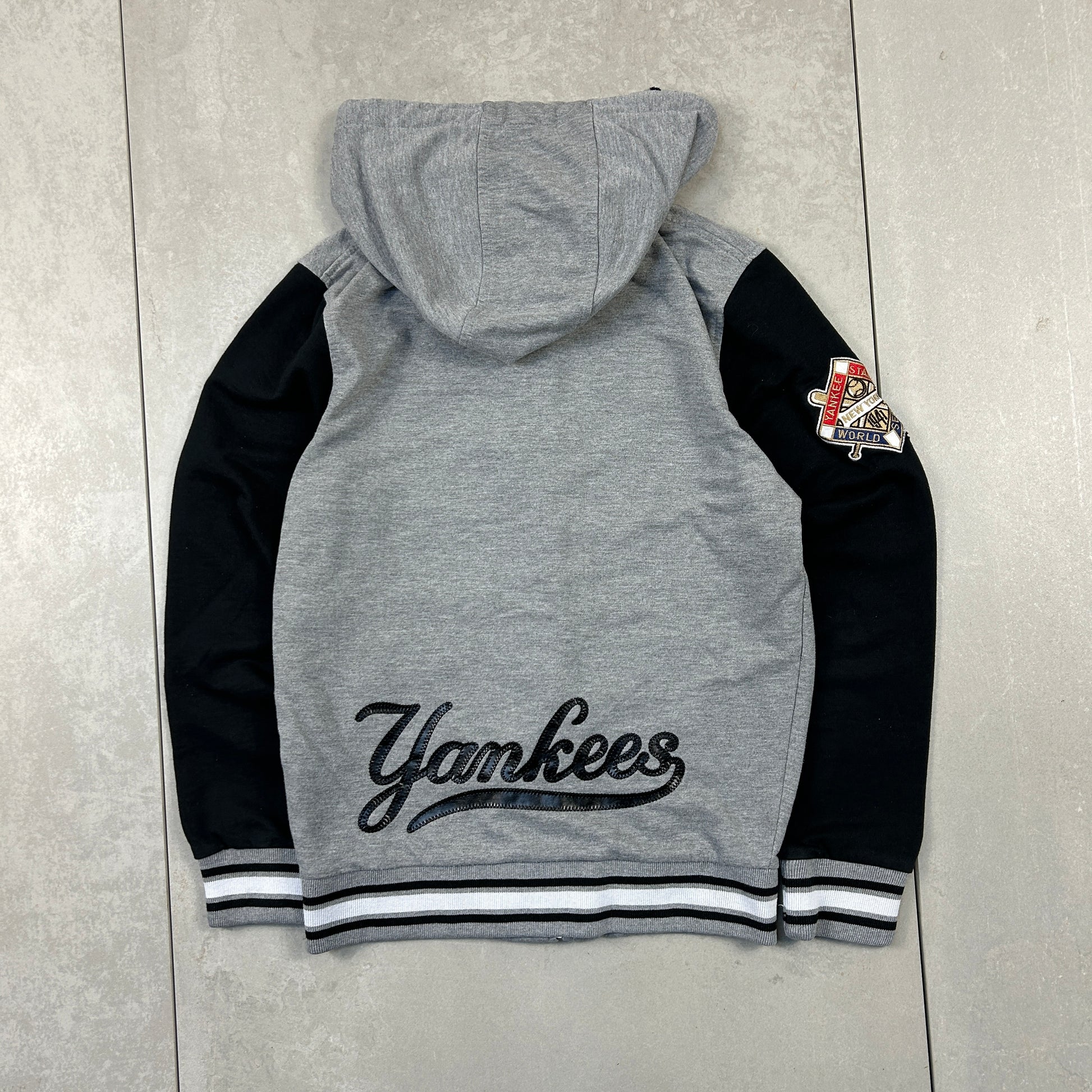 Vintage 90s New York Yankees Grey Embroidered Zip Hoodie Sweatshirt - XS