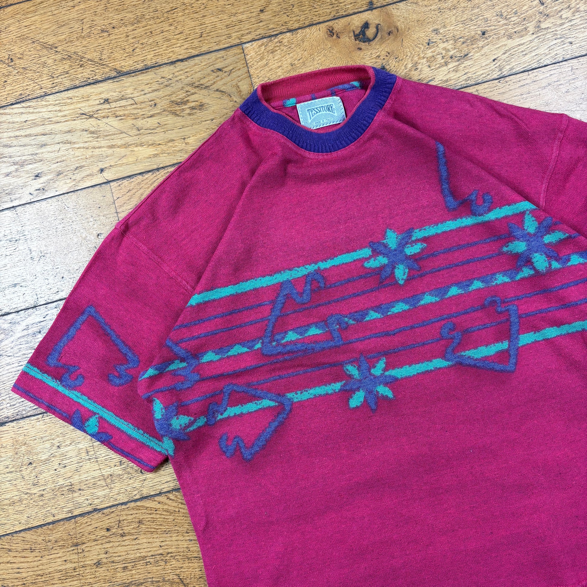 Vintage 90s Pattern Pink Graphic T-Shirt - XL