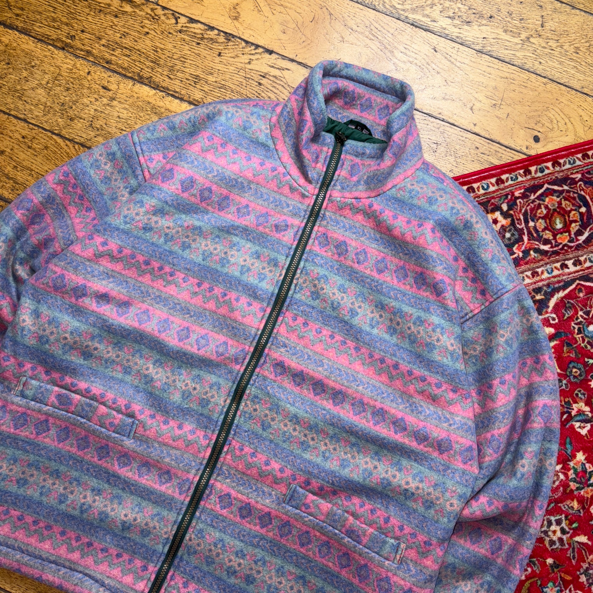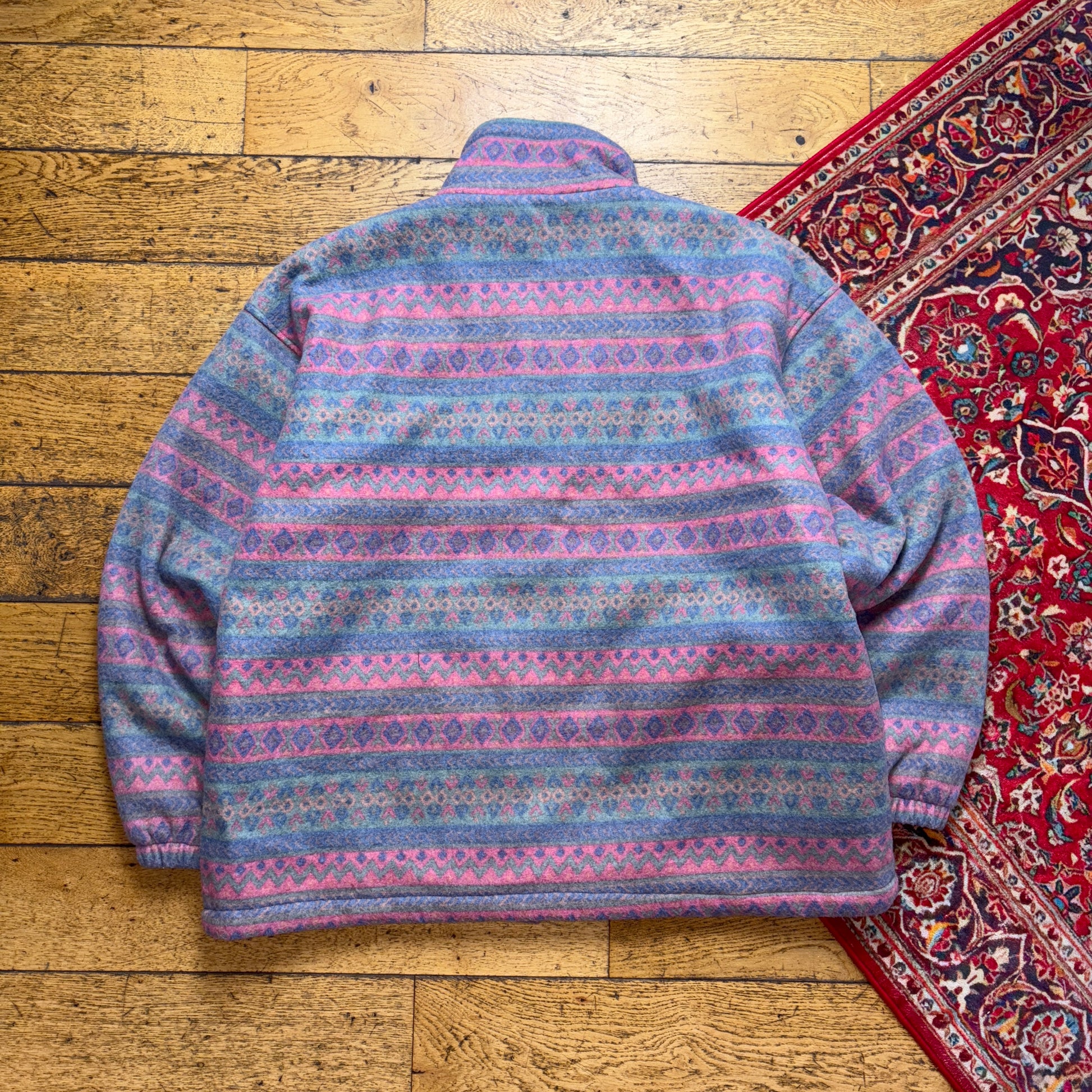 Vintage 90s Purple Blue Crazy Fleece Quilt Lined Sweatshirt - 2XL