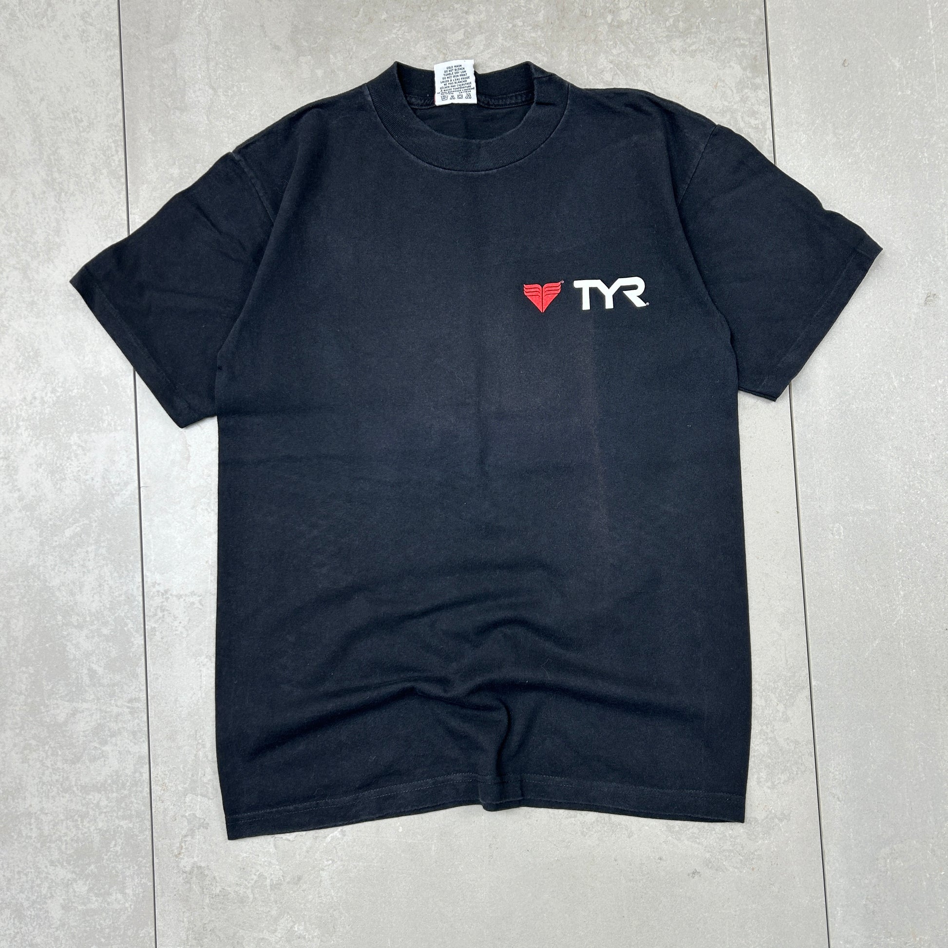 Vintage 90s TYR Single Stitch Graphic Funny Dog Black T-Shirt - S