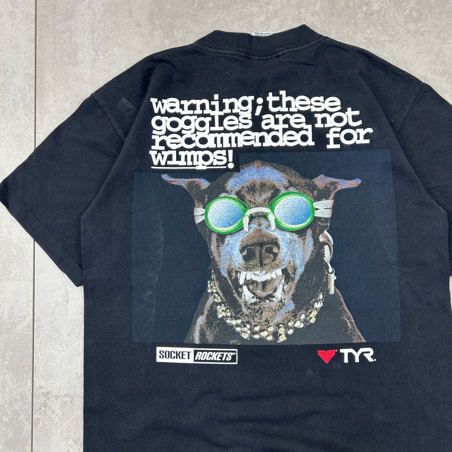 Vintage 90s TYR Single Stitch Graphic Funny Dog Black T-Shirt - S