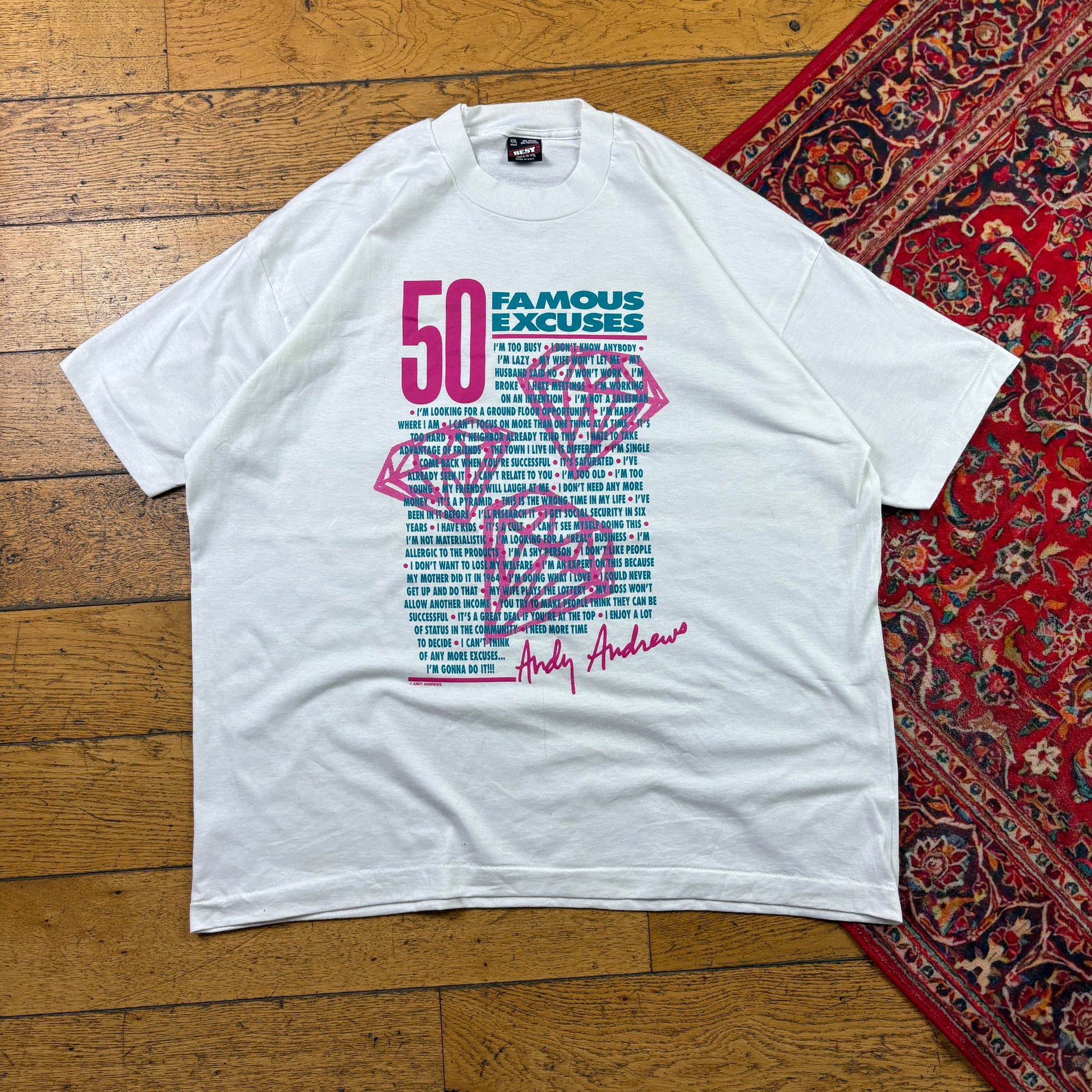 Vintage 90s White Funny Slogan Single Stitch Graphic T-Shirt - 2XL