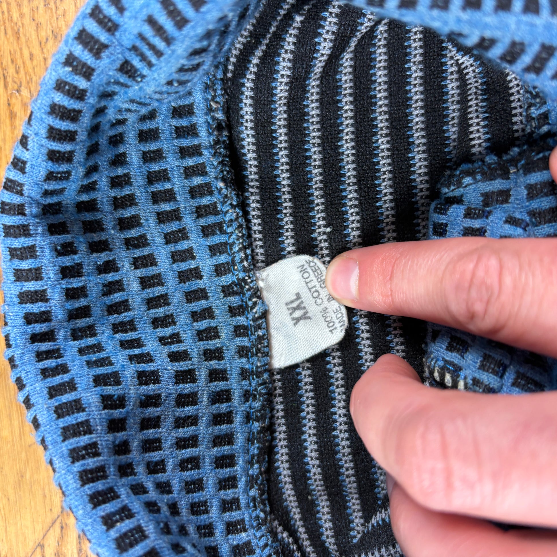 Vintage Adidas Embroidered Blue Pattern Polo T-Shirt - XXL