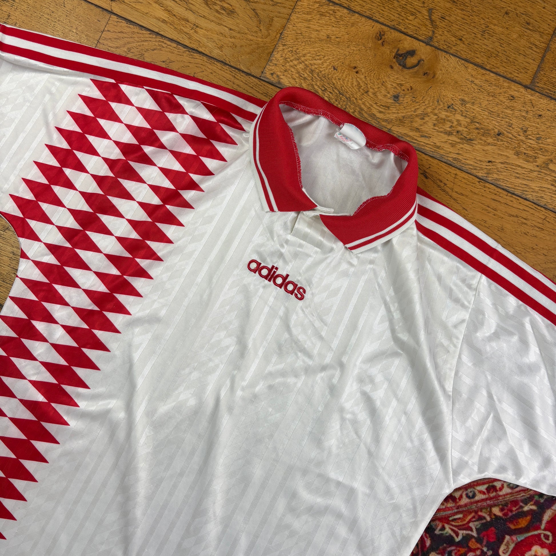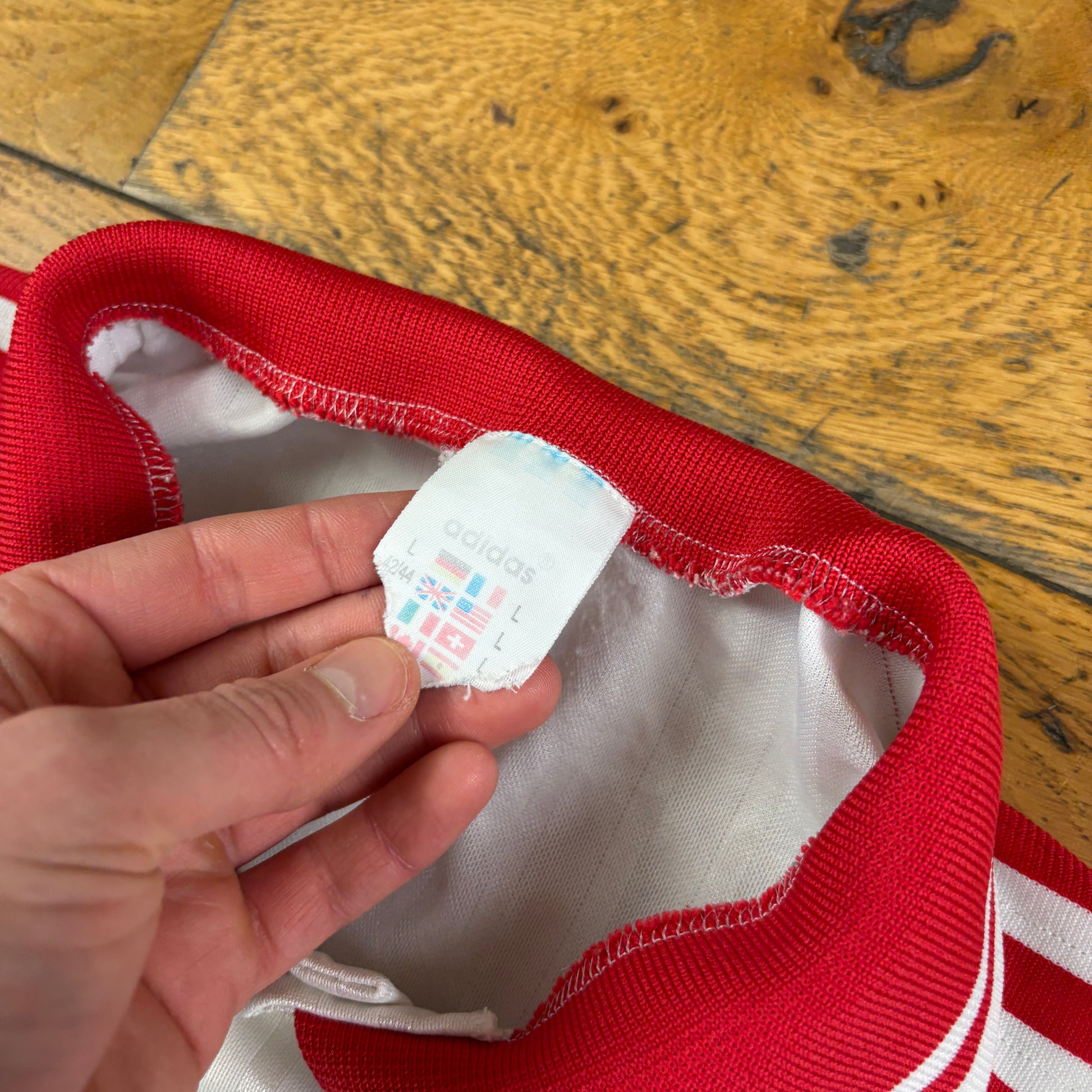 Vintage Adidas Embroidered White Red Football Polo T Shirt - M