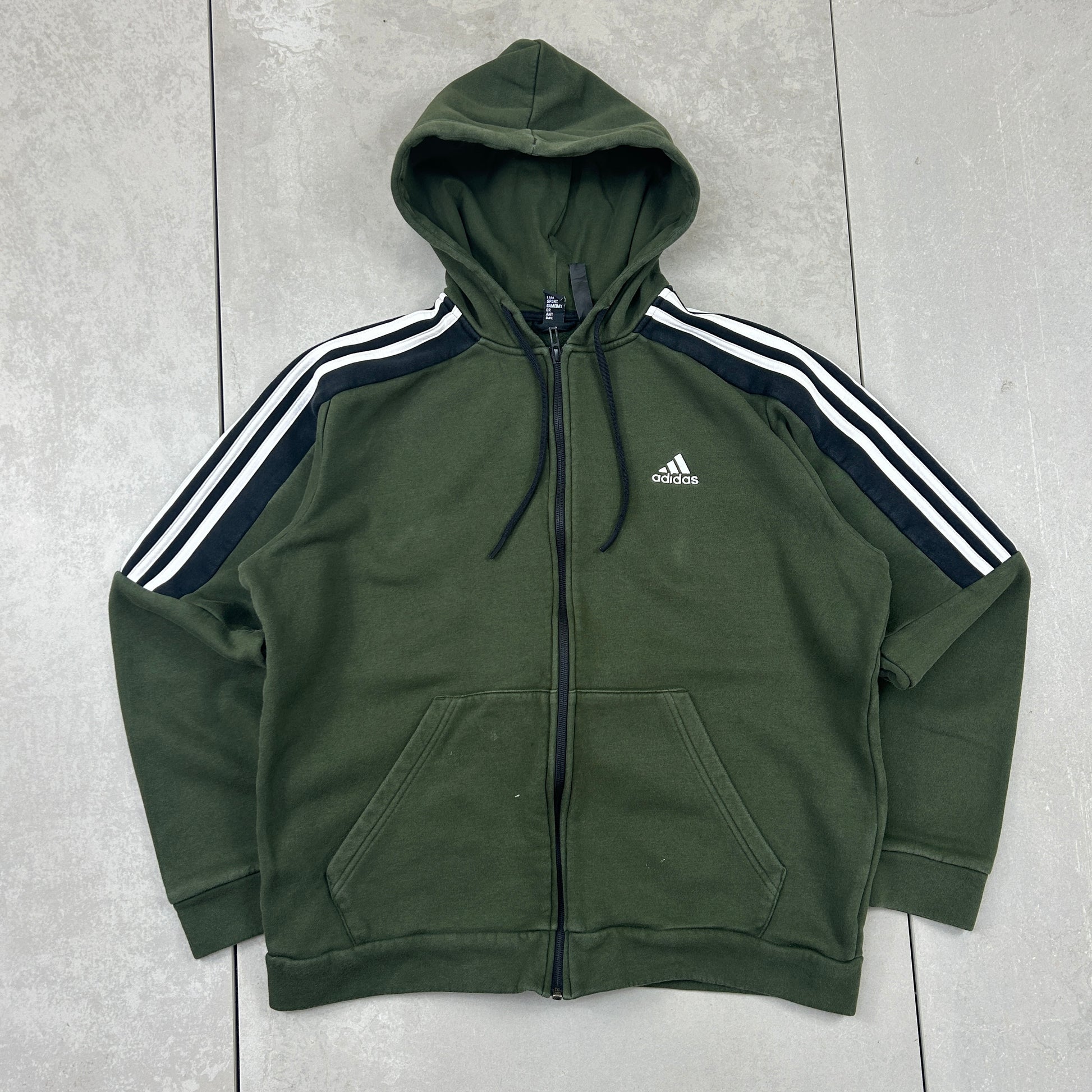 Vintage Adidas Green Zip Hoodie Embroidered Sweatshirt - M