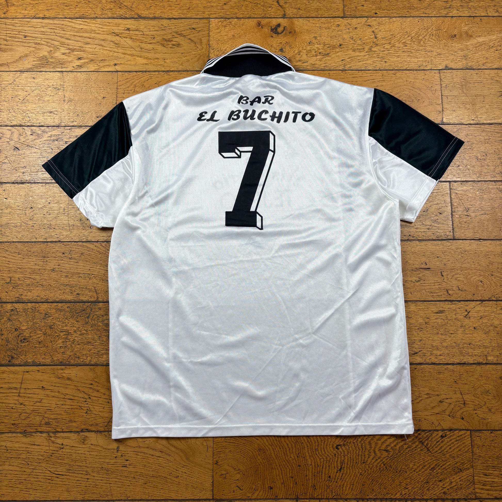 Vintage Adidas White Black Football Polo T-Shirt - XL