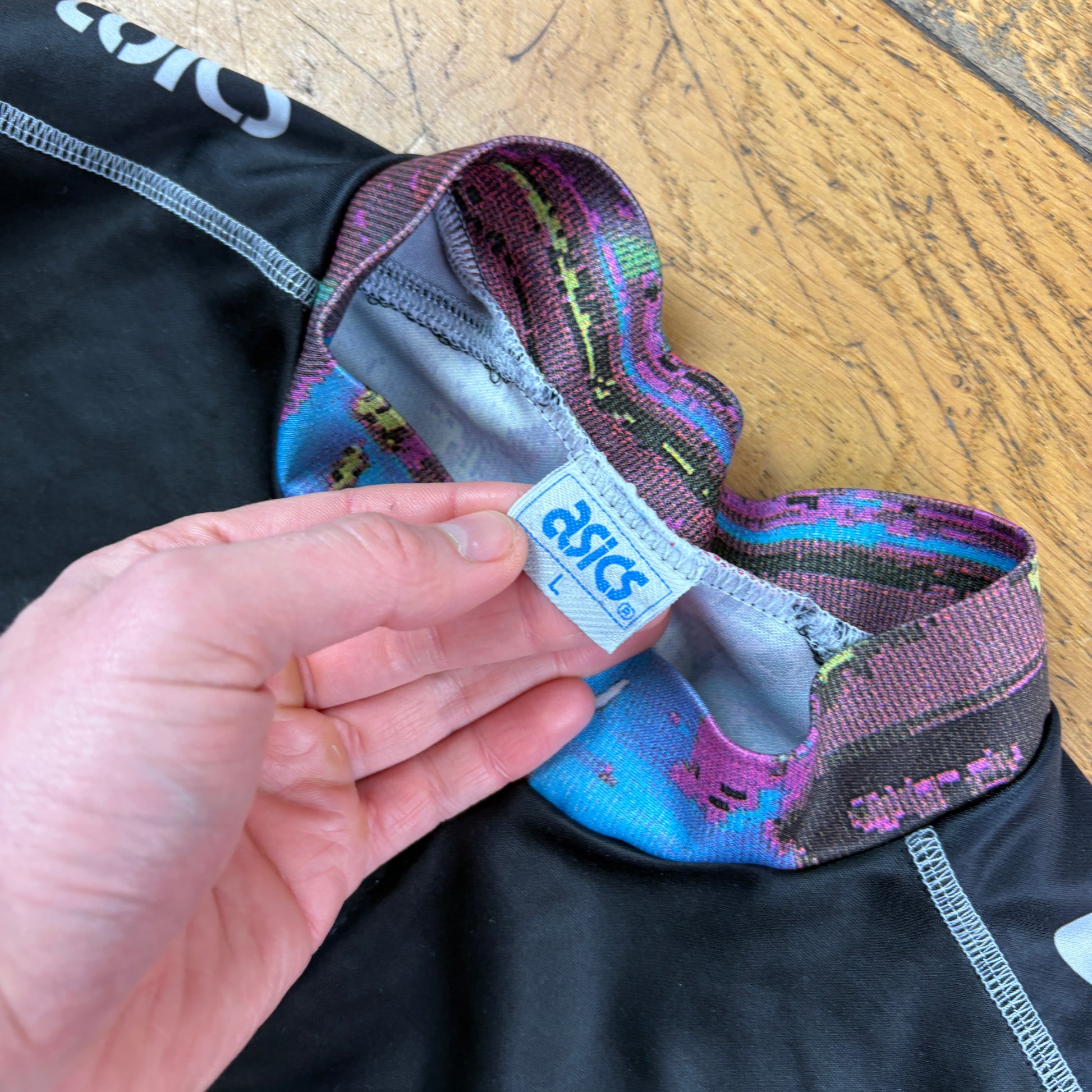 Vintage ASICs Black Sports Cycling Graphic T-Shirt - M