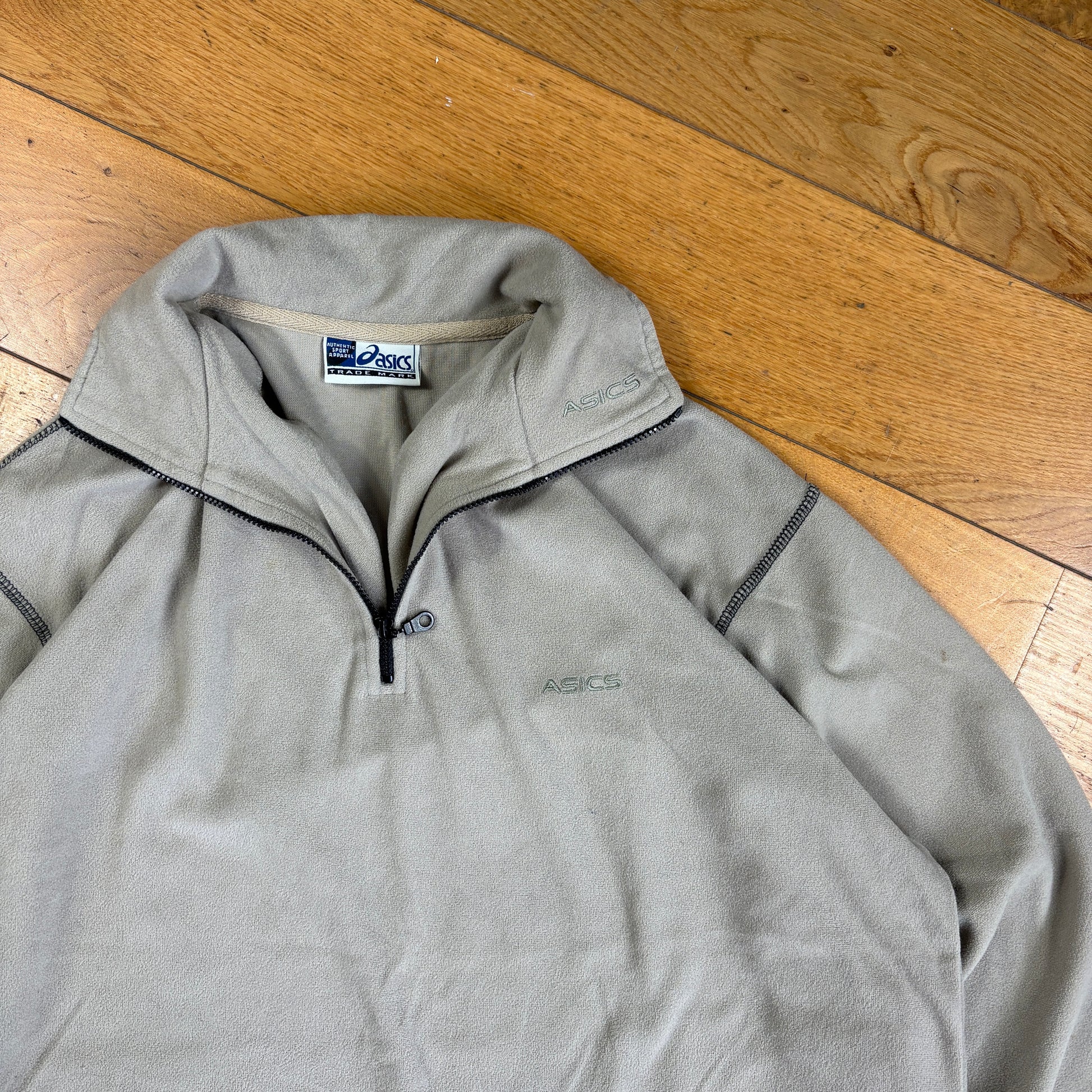 Vintage Asics Embroidered Green Cream Fleece Sweatshirt - M
