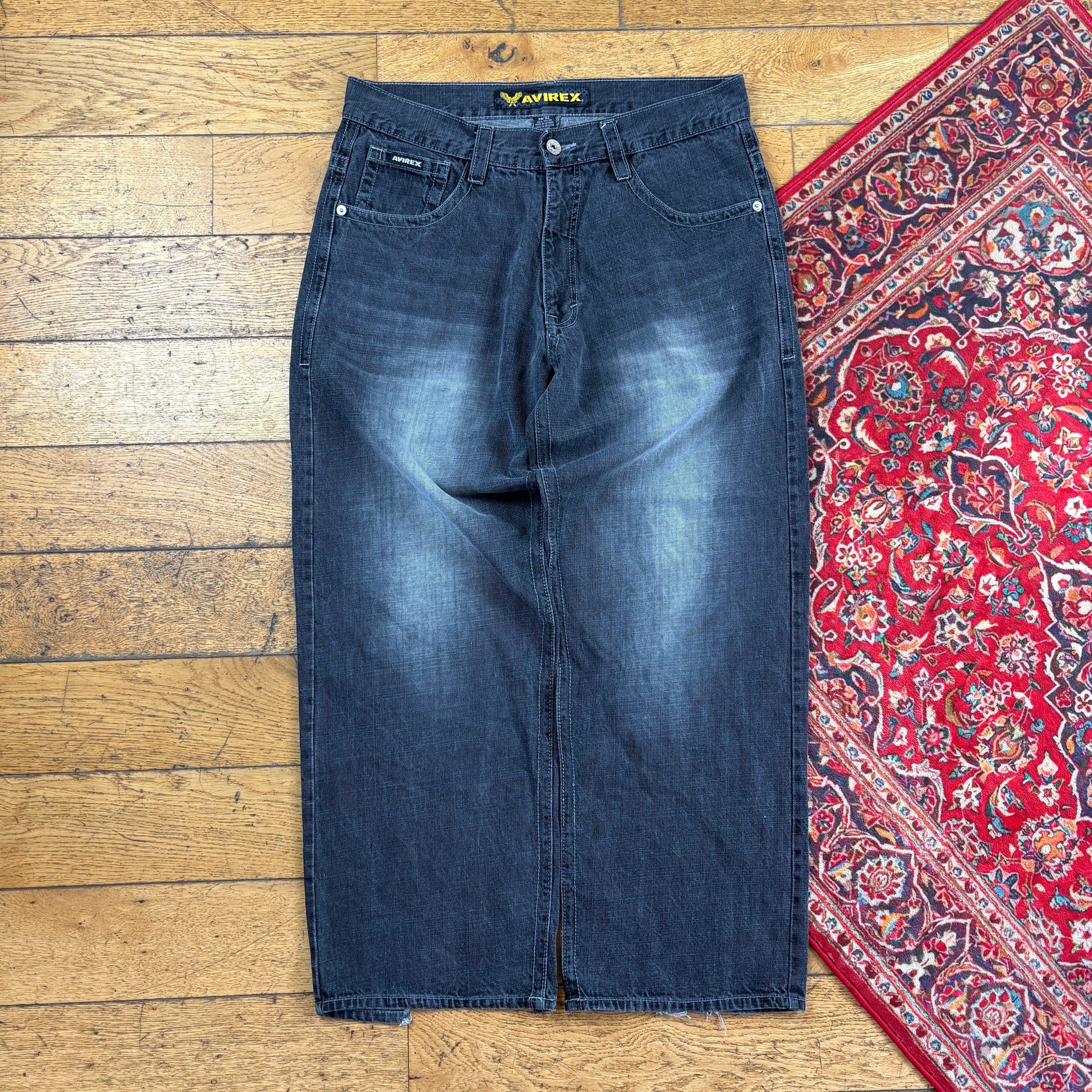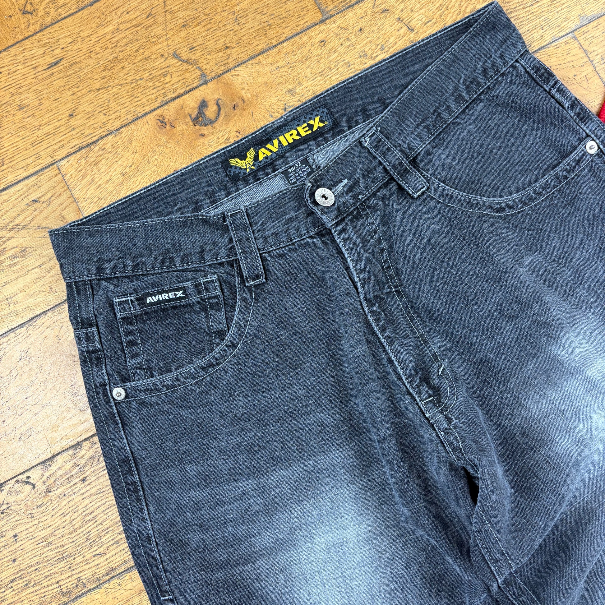 Vintage Avirex Black Embroidered Y2K Hip Hop Baggy Jeans - 39