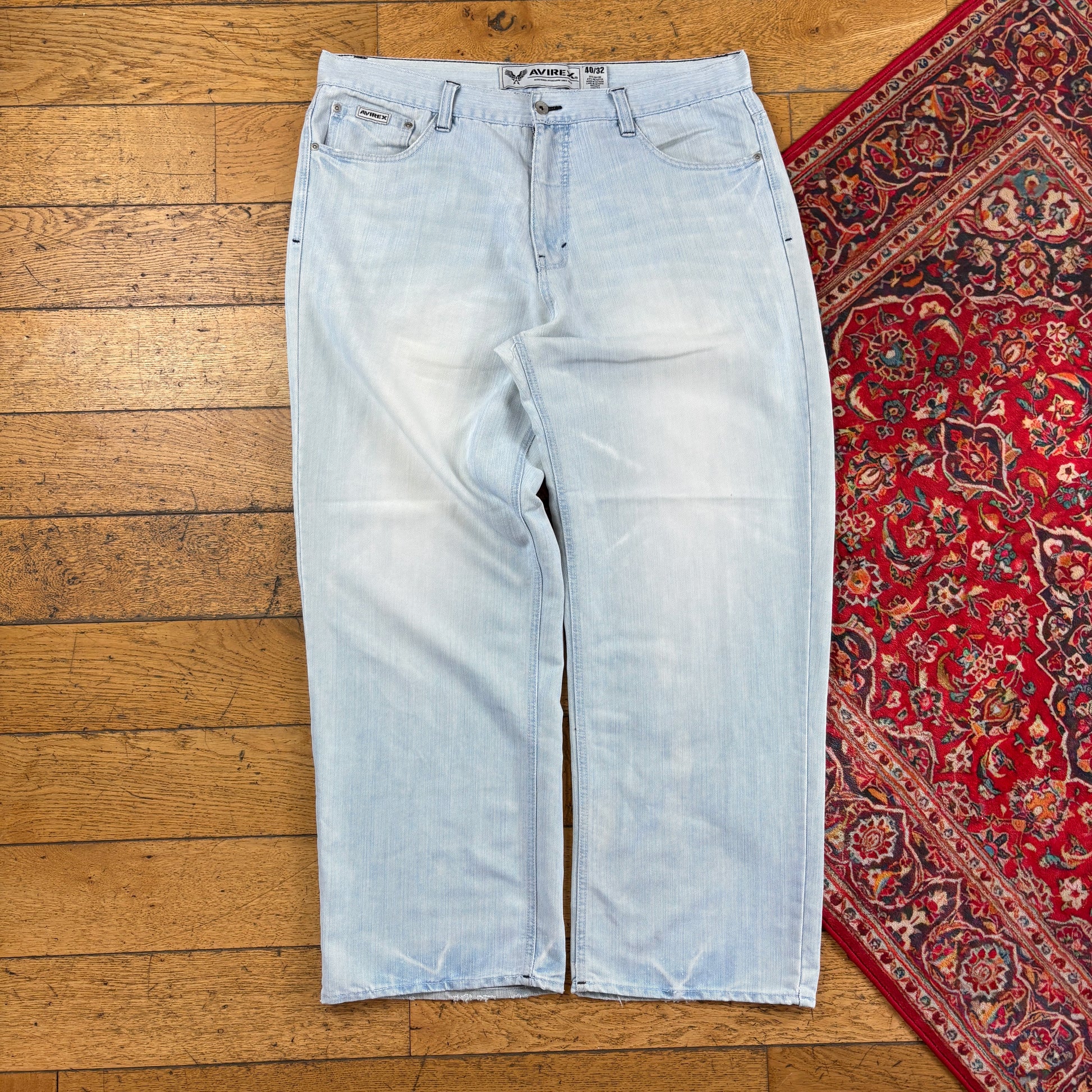 Vintage Avirex Blue Embroidered Y2K Hip Hop Baggy Jeans - 40