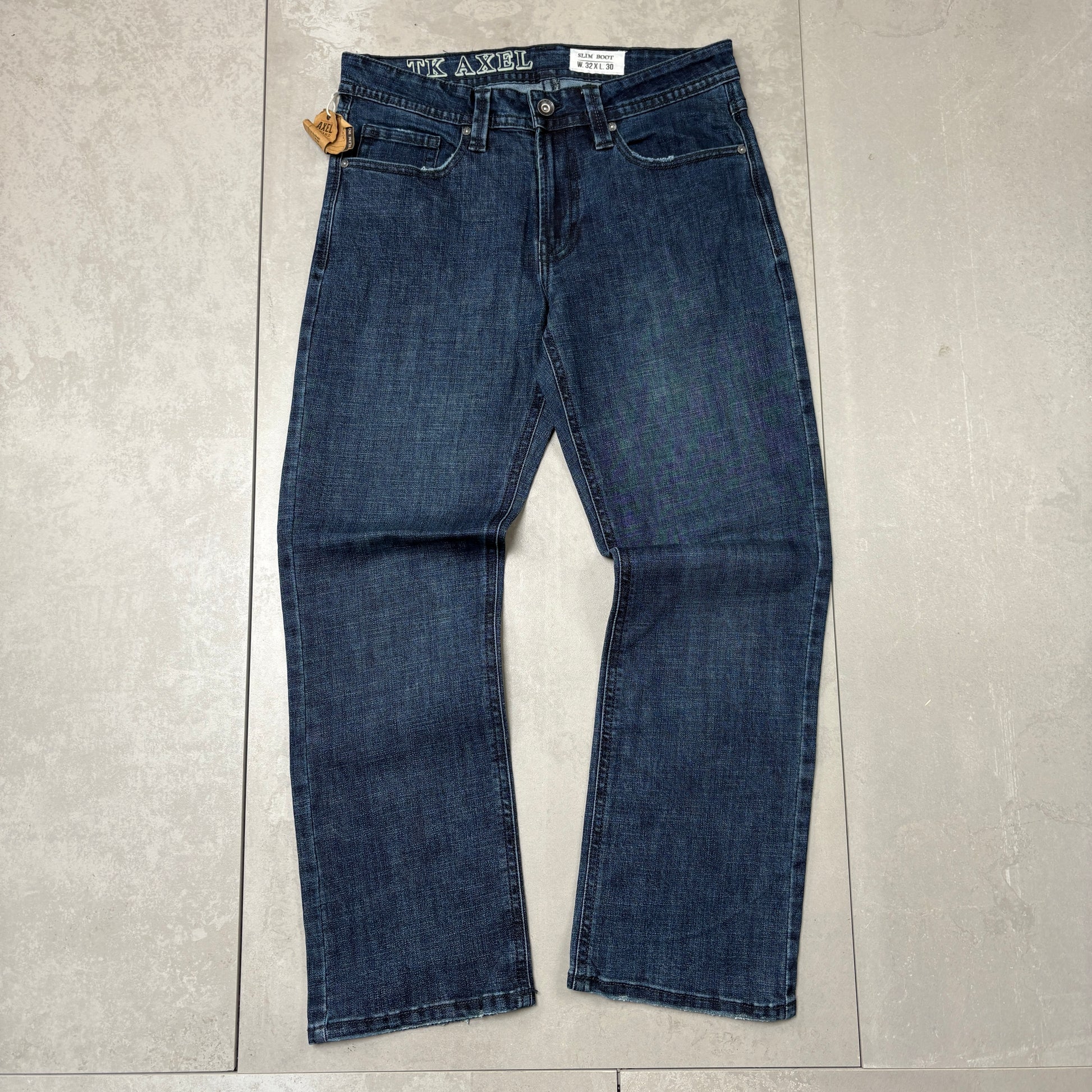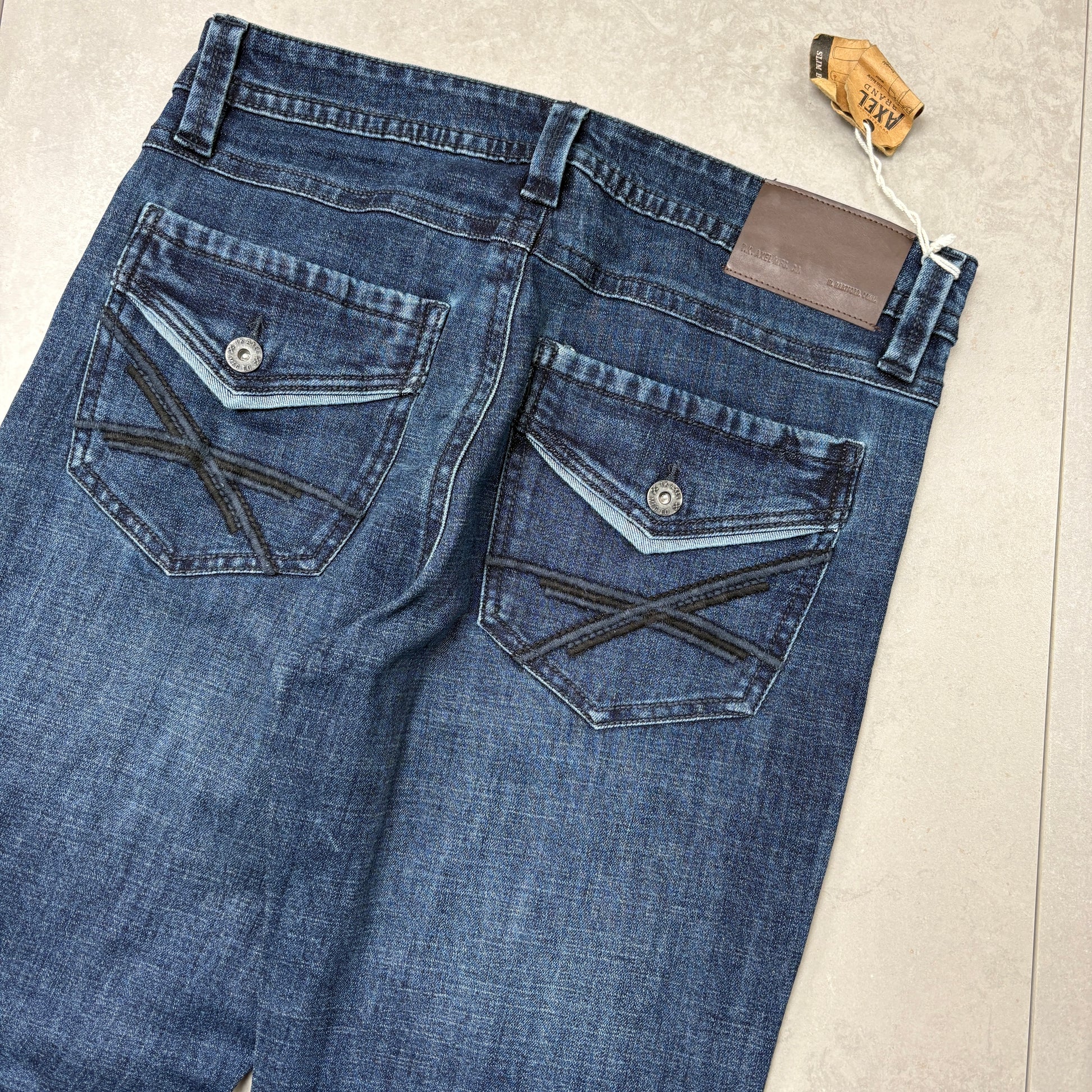 Vintage Axel Embroidered Hip Hop Blue Baggy Jeans - 32