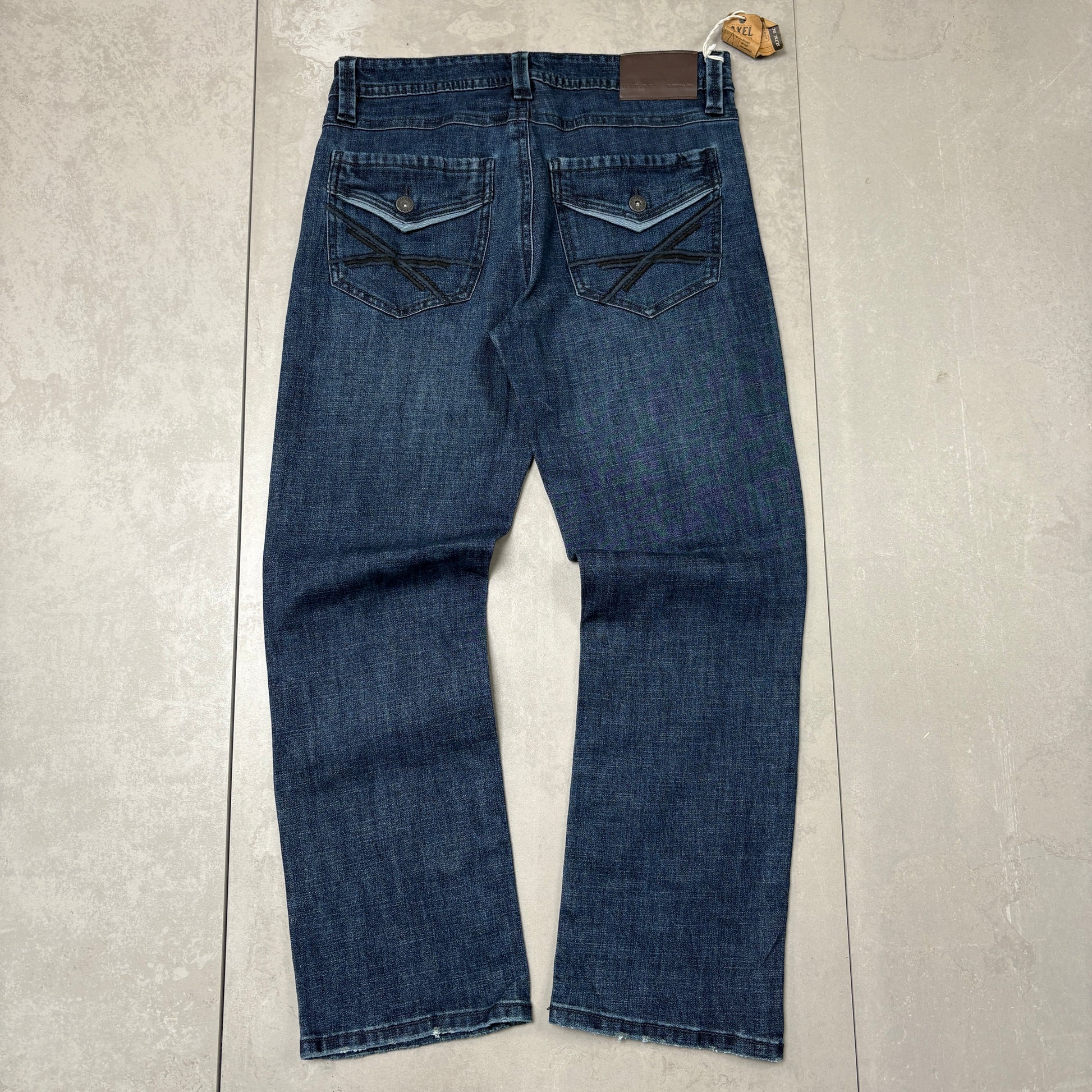 Contrast stitch true religion JNCO Coogi Southpole akademics Fubu skate rocawear embroidered denim jeans