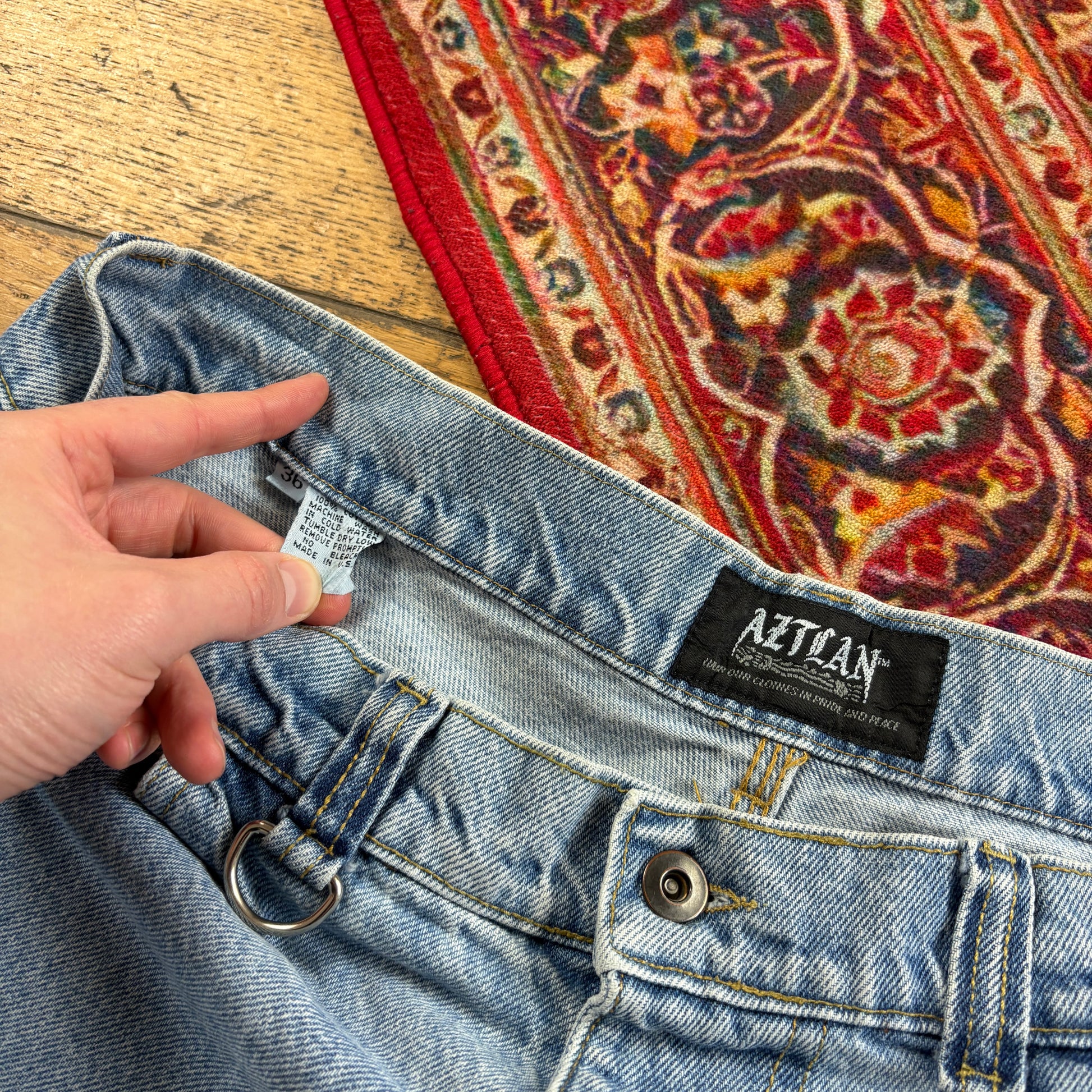 Vintage Aztlan Blue Carpenter Embroidered JNCO Style Y2K Baggy Jeans - 36