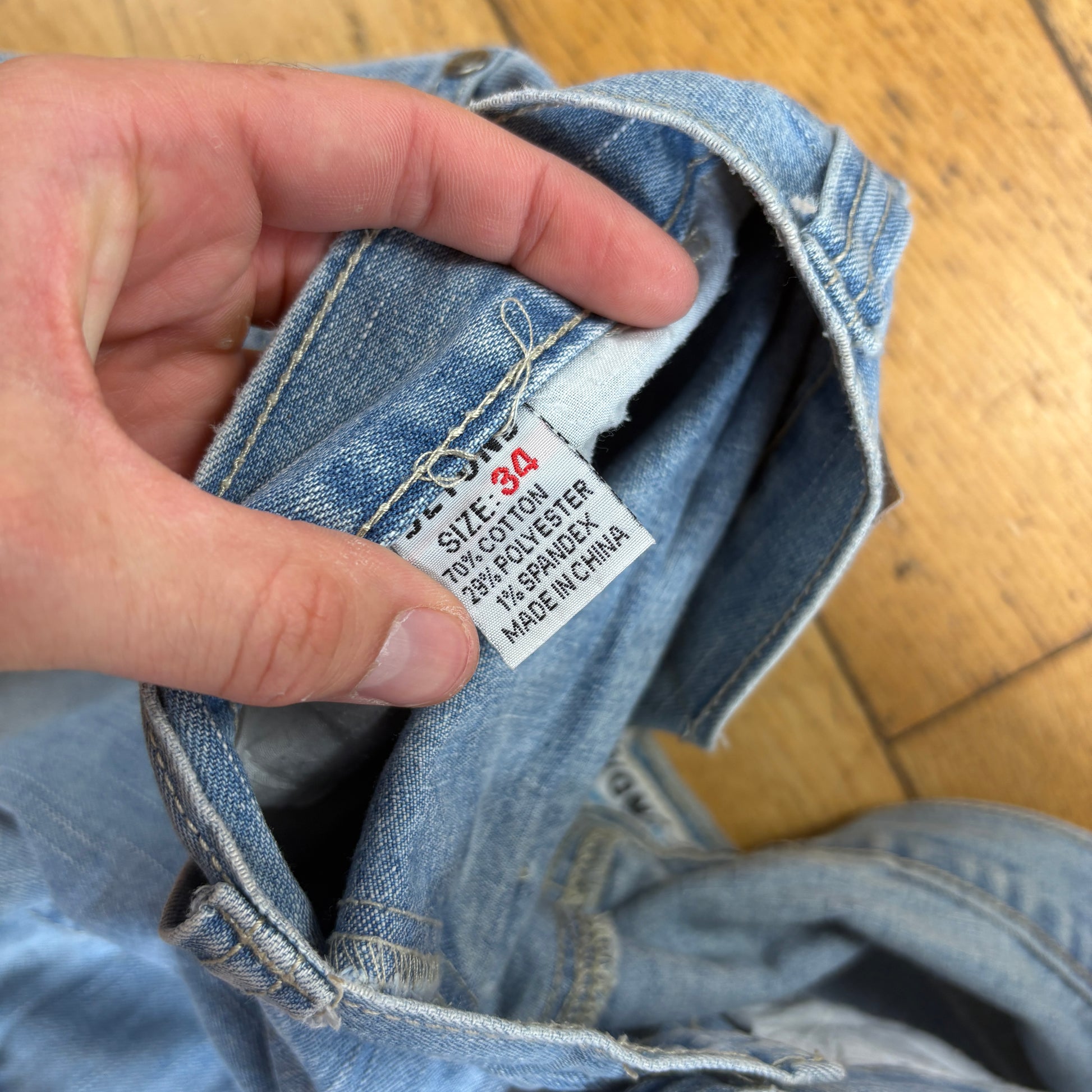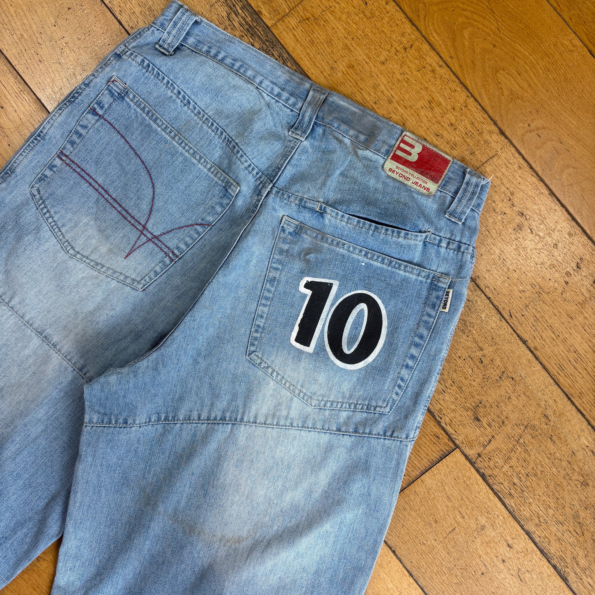 Contrast stitch true religion JNCO Coogi Southpole akademics Fubu skate rocawear embroidered denim jeans jorts skatewear surfwear carpenter cargo japanese denim