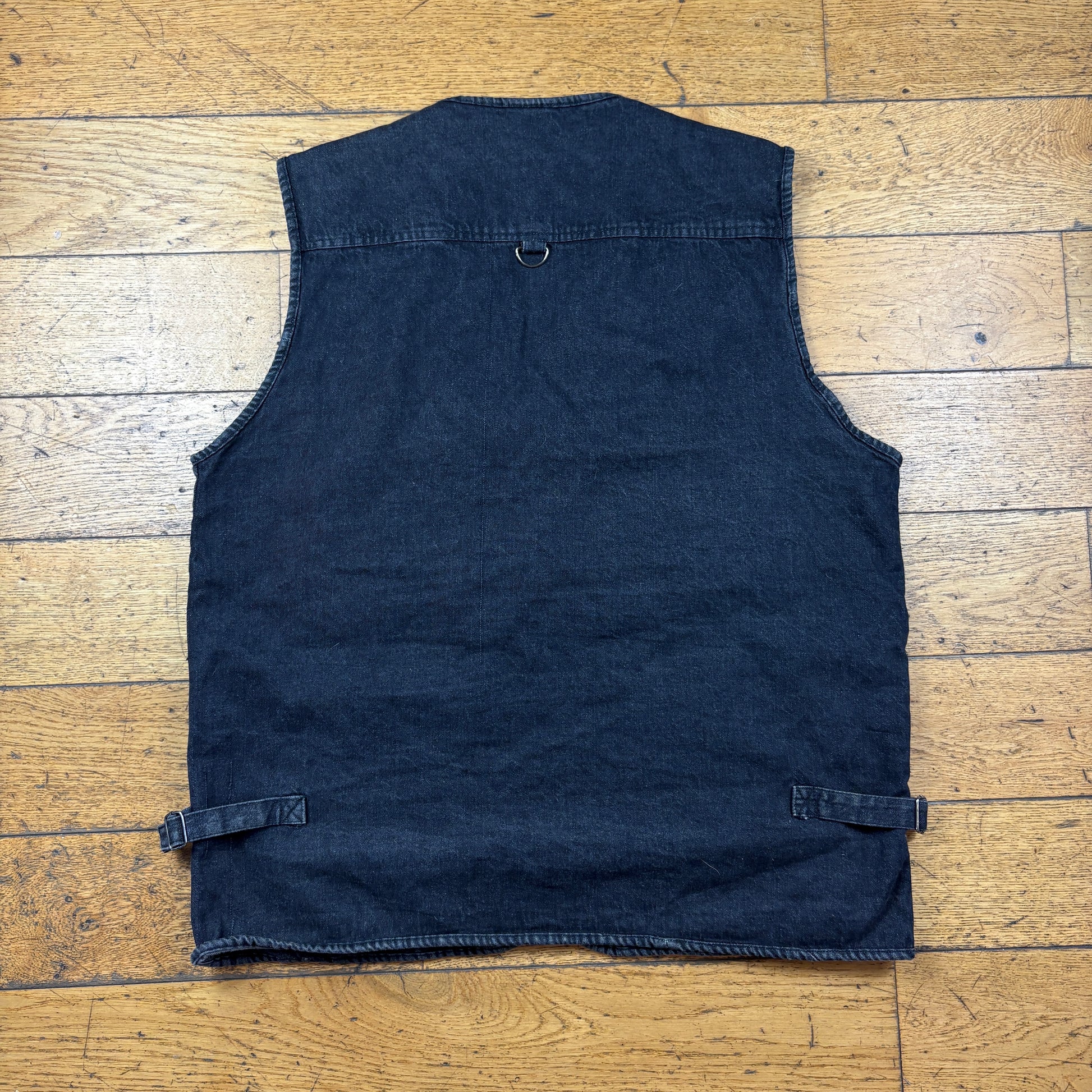 Vintage Black Denim Hunting Fishing Gilet Vest - XL