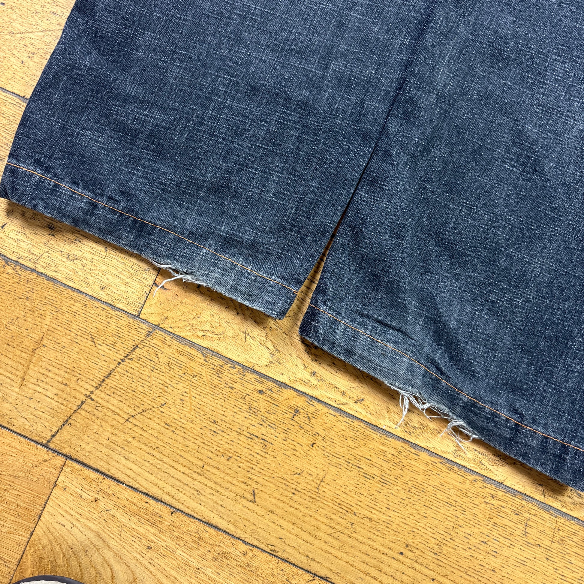 Contrast stitch true religion JNCO Coogi Southpole akademics Fubu skate rocawear embroidered denim jeans japanese denim y2k skatewear surfwear
