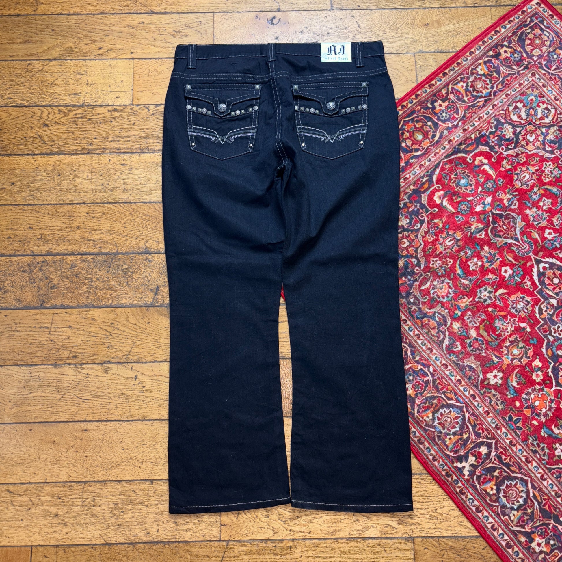 Vintage Black Rock Revival Style Bootcut Embroidered Y2K Baggy Jeans - 40S