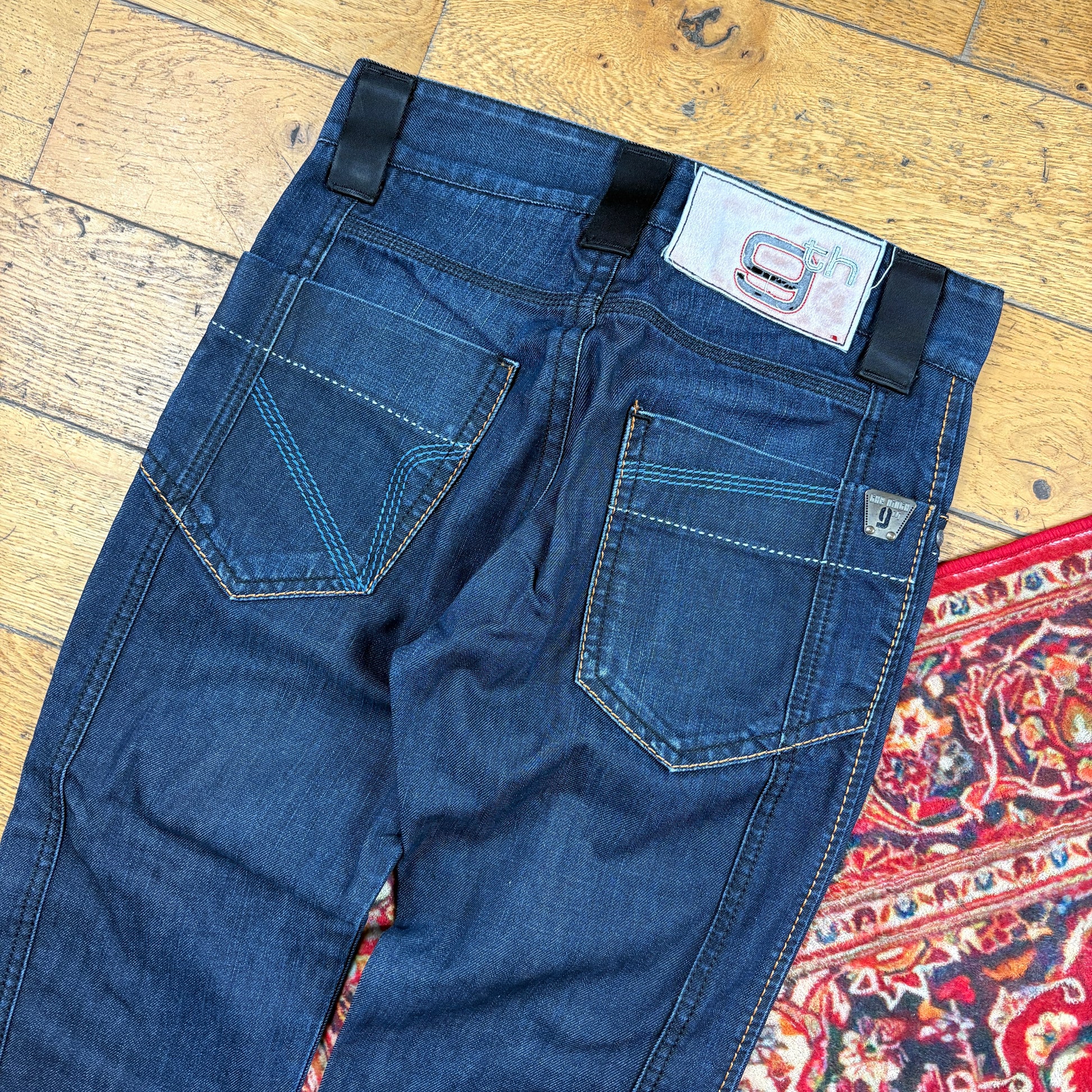 Contrast stitch true religion JNCO Coogi Southpole akademics Fubu skate rocawear embroidered denim jeans