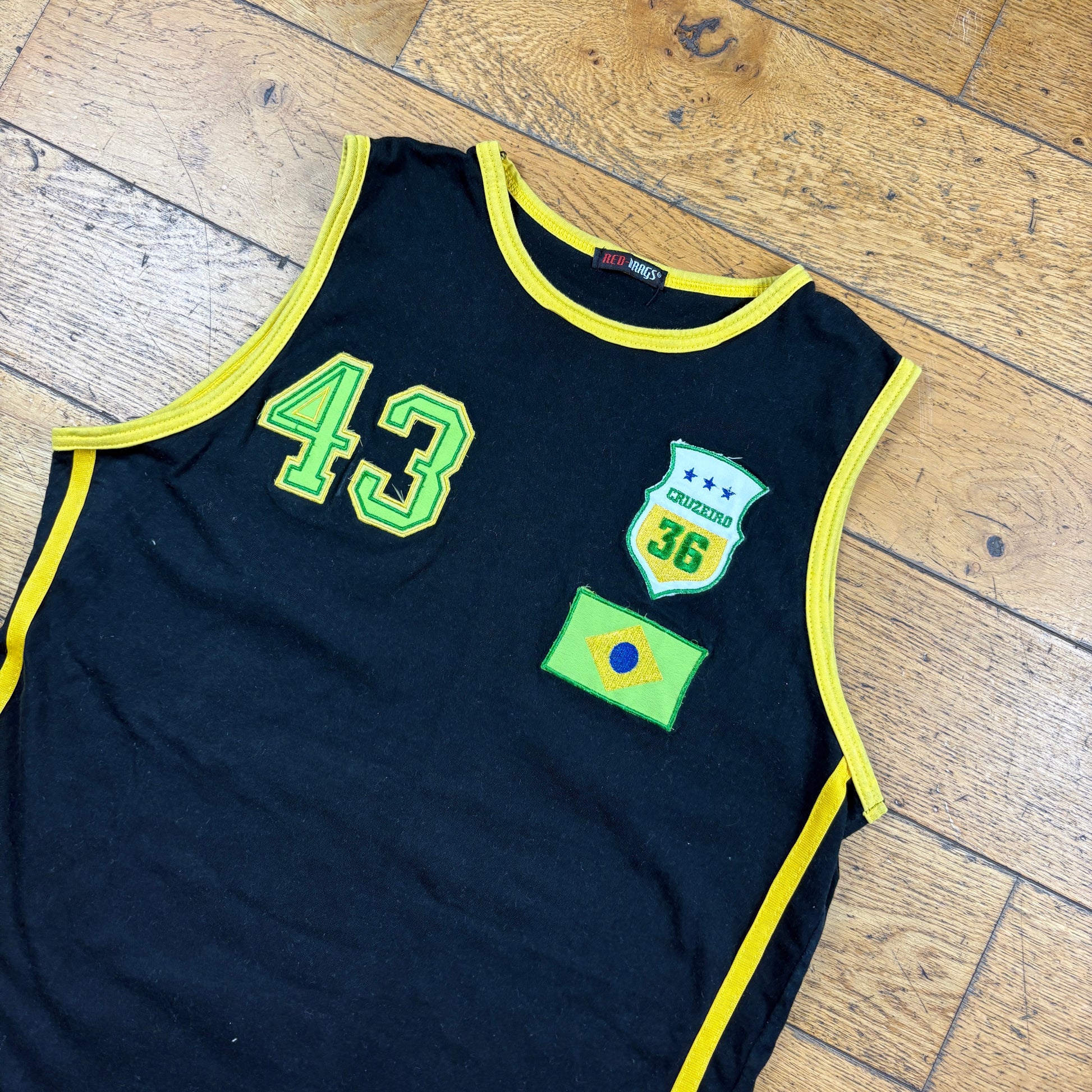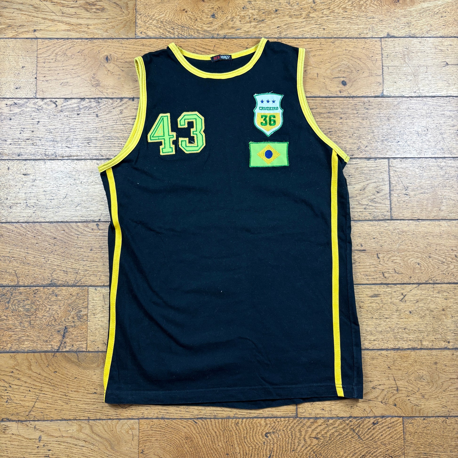Vintage Brazil Embroidered Black Vest Graphic T-Shirt - S