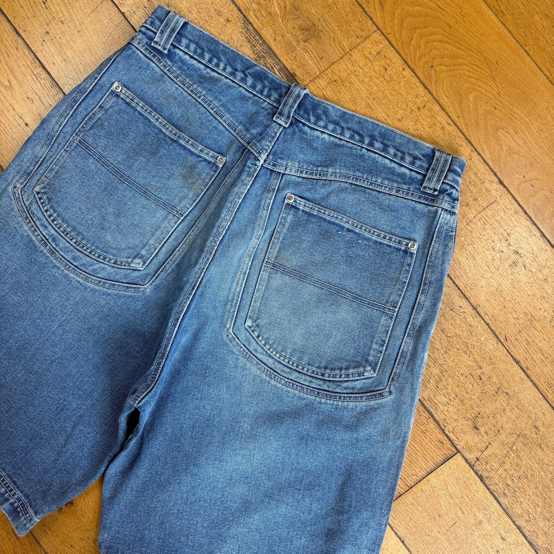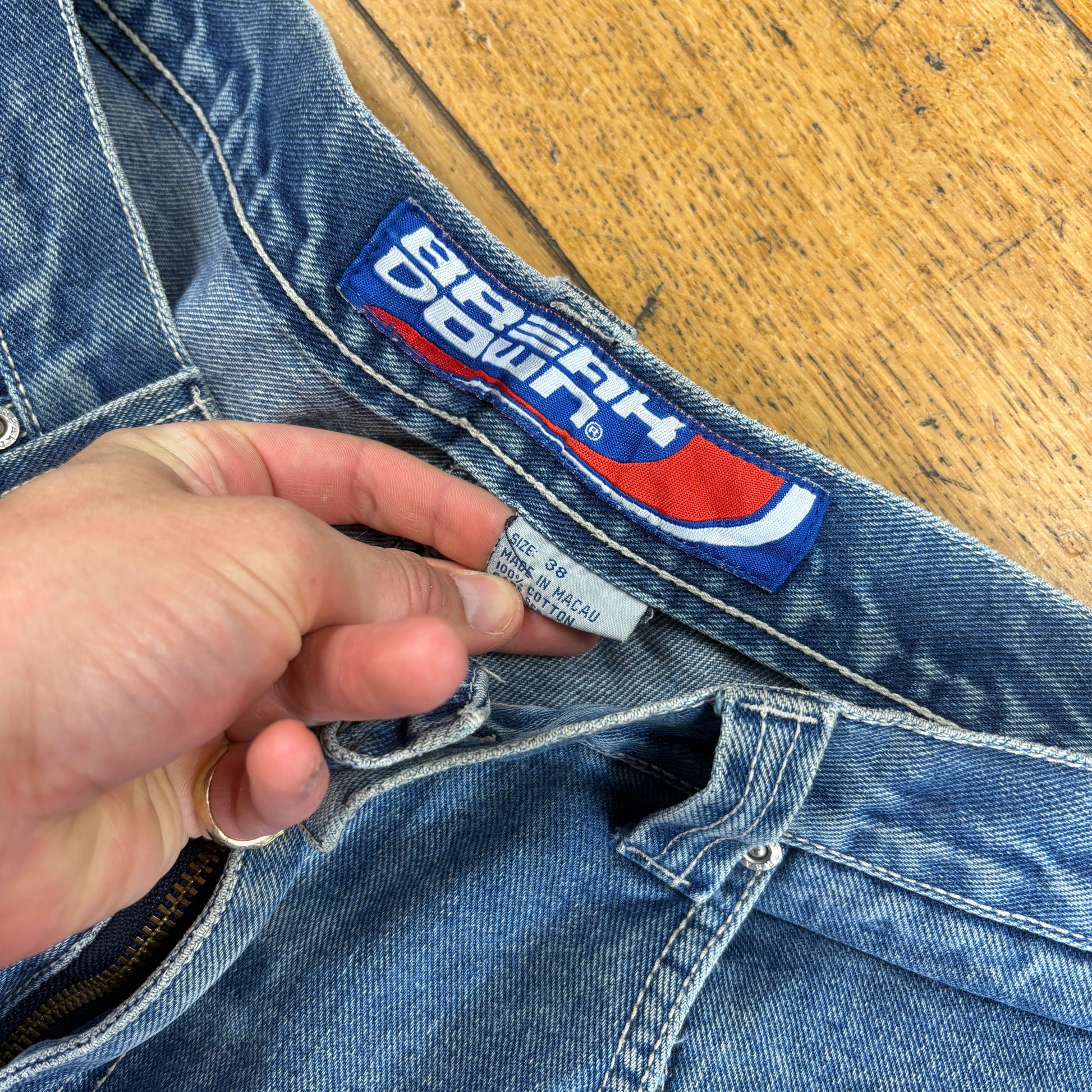 Contrast stitch true religion JNCO Coogi Southpole akademics Fubu skate rocawear embroidered denim jeans jorts skatewear surfwear carpenter cargo japanese denim