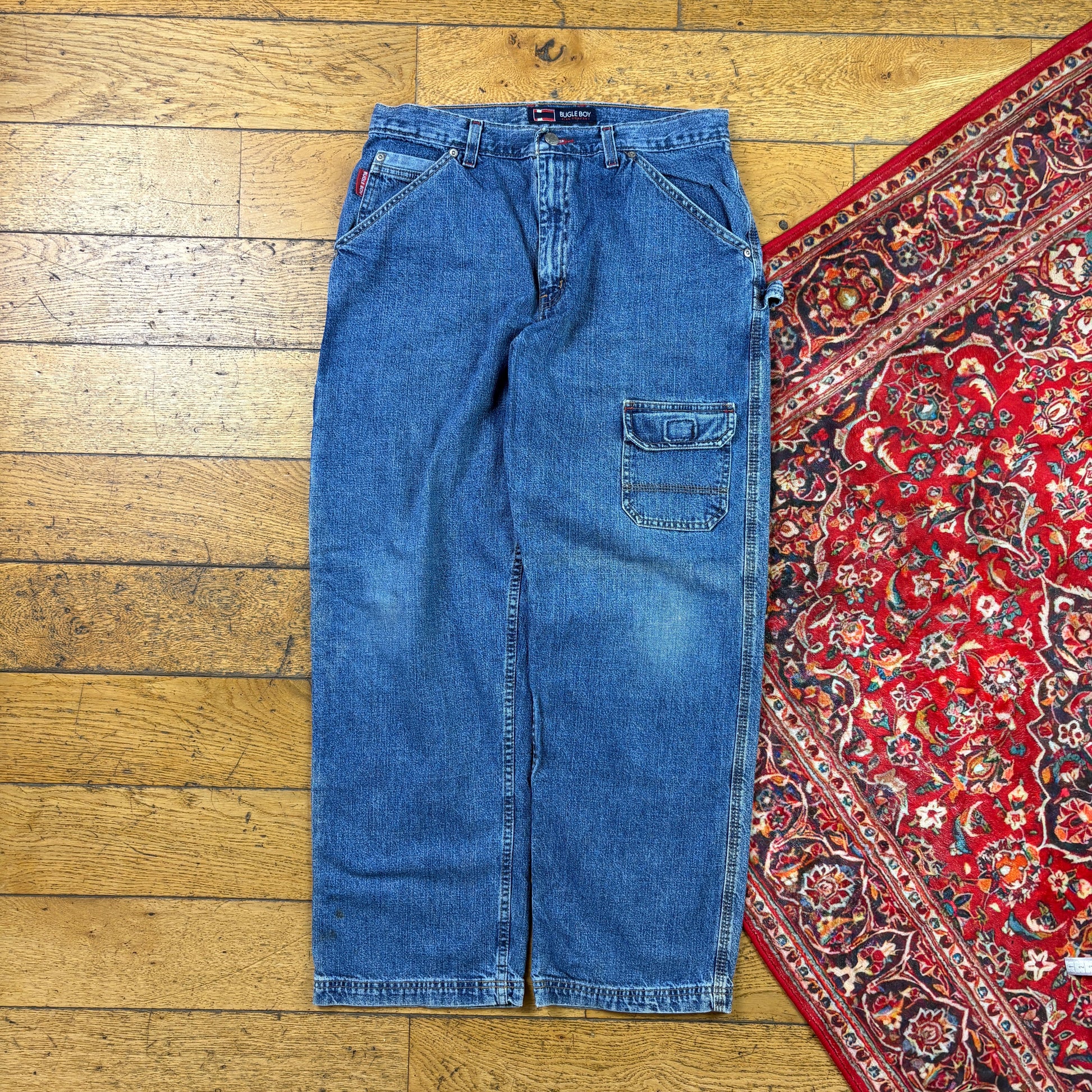 Vintage Bugle Boy Blue Cargo Embroidered Y2K Hip Hop Baggy Jeans - 34