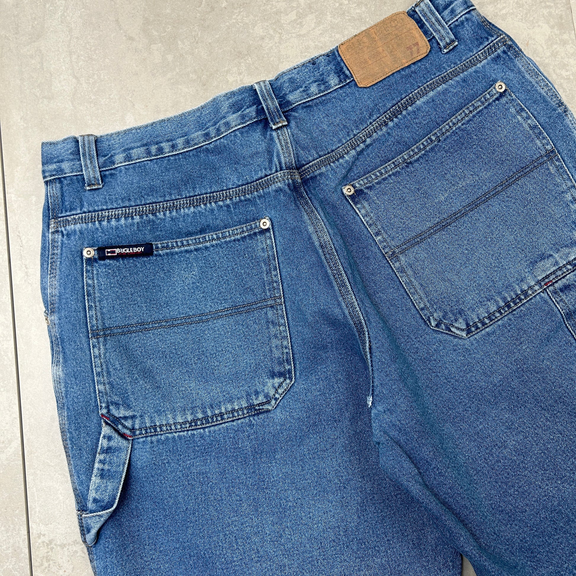 Contrast stitch true religion JNCO Coogi Southpole akademics Fubu skate rocawear embroidered denim jeans jorts skatewear surfwear carpenter cargo japanese denim