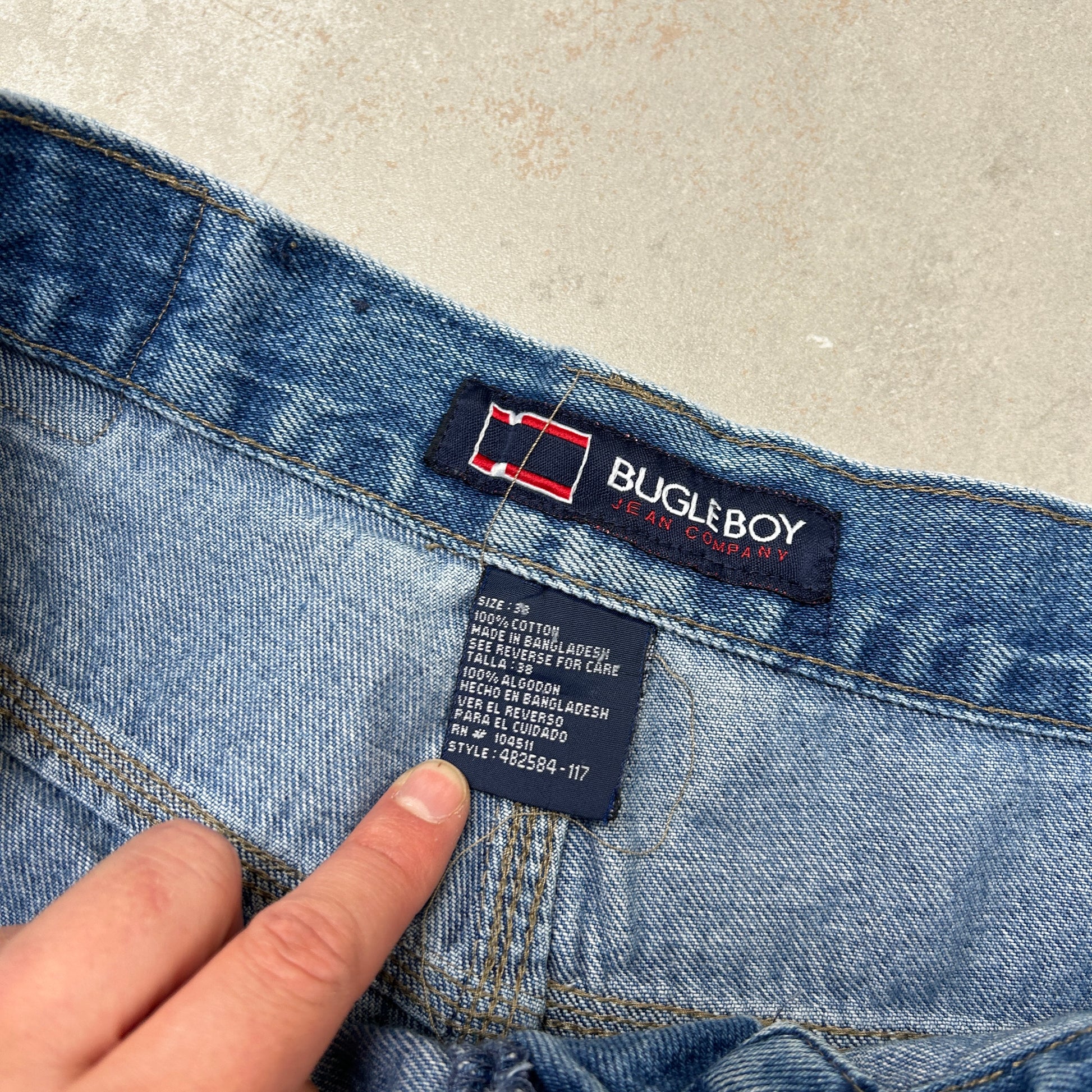Vintage Bugle Boy Embroidered Hip Hop Baggy Blue Shorts Jorts - 38