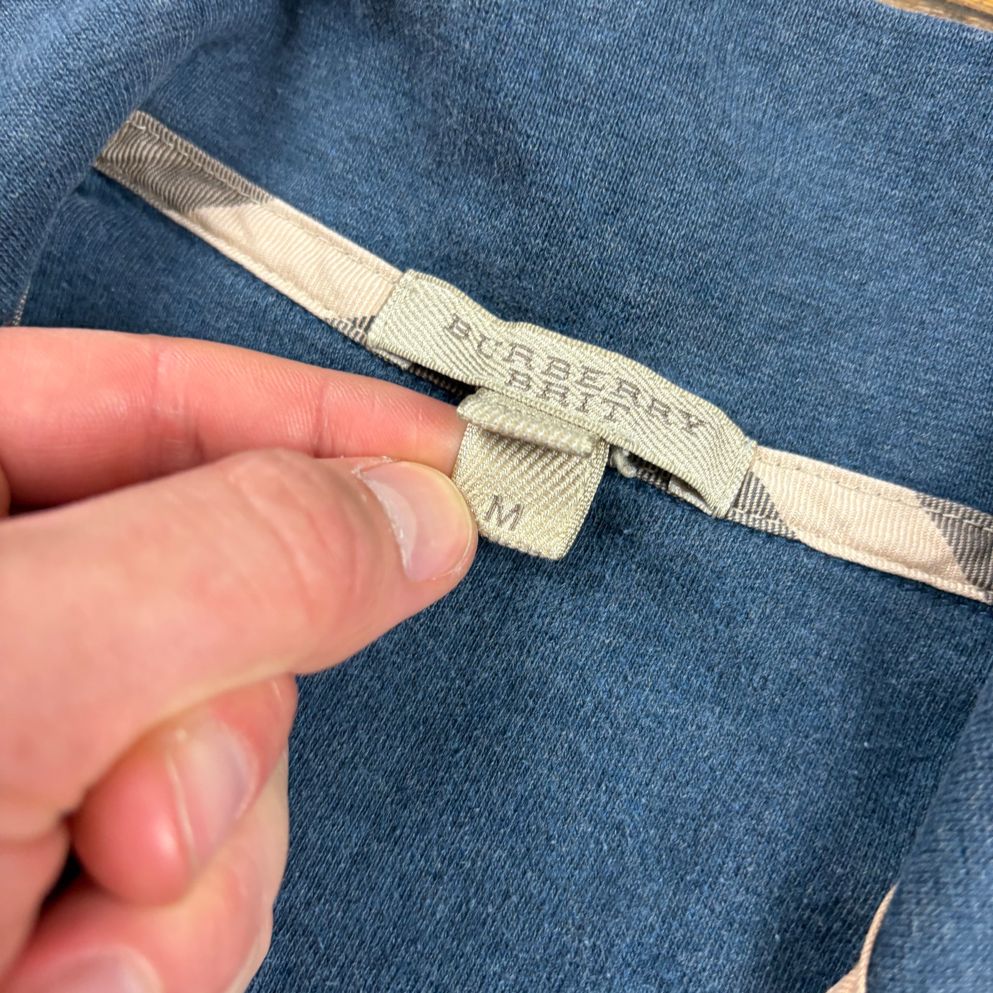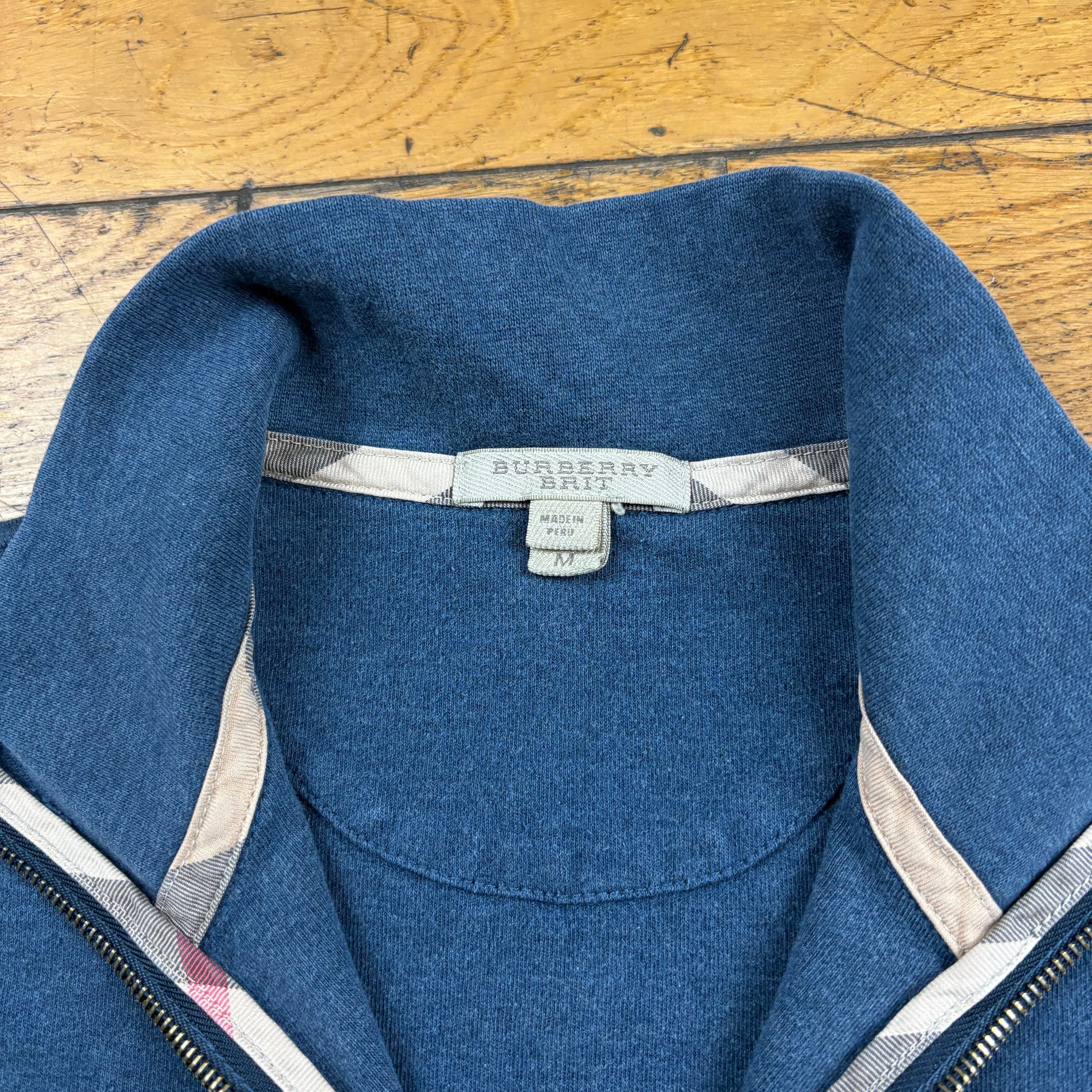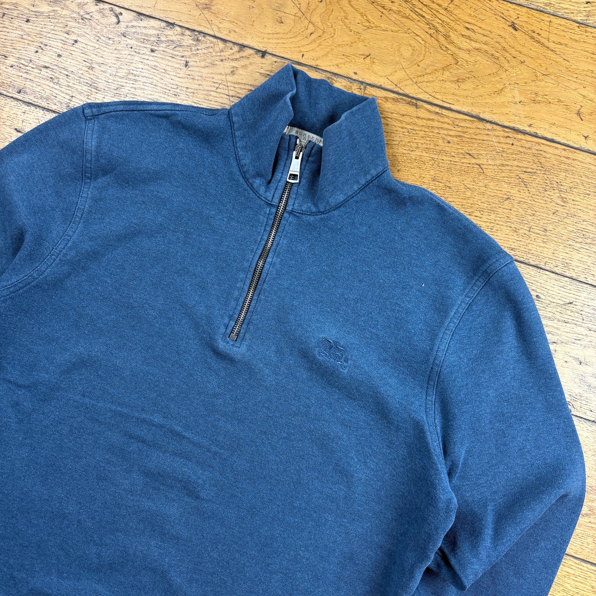 Vintage Burberry Blue Quarter Zip Embroidered Sweatshirt - S