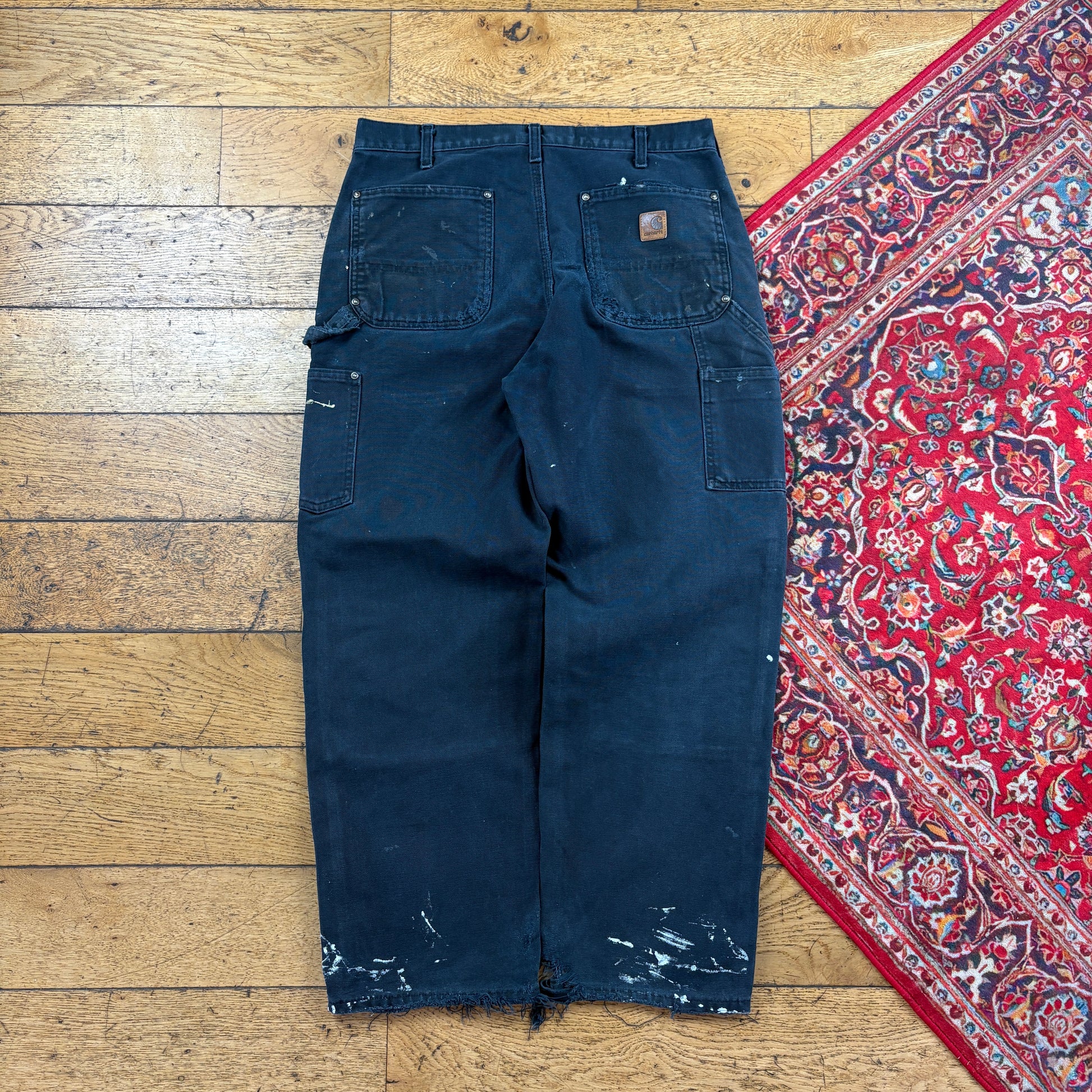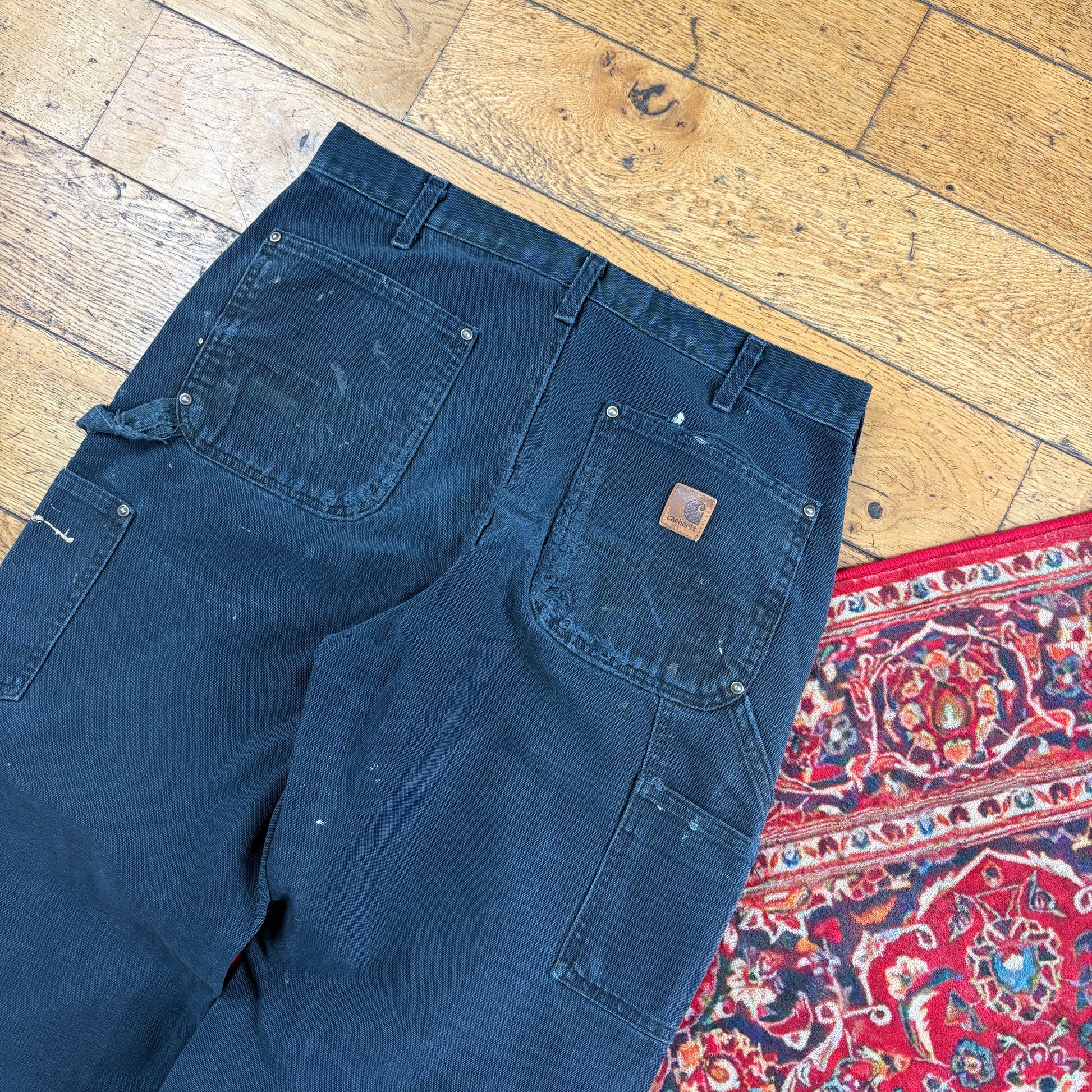 Vintage Carhartt Black Double Knee Workwear Carpenter Baggy Trousers - 33