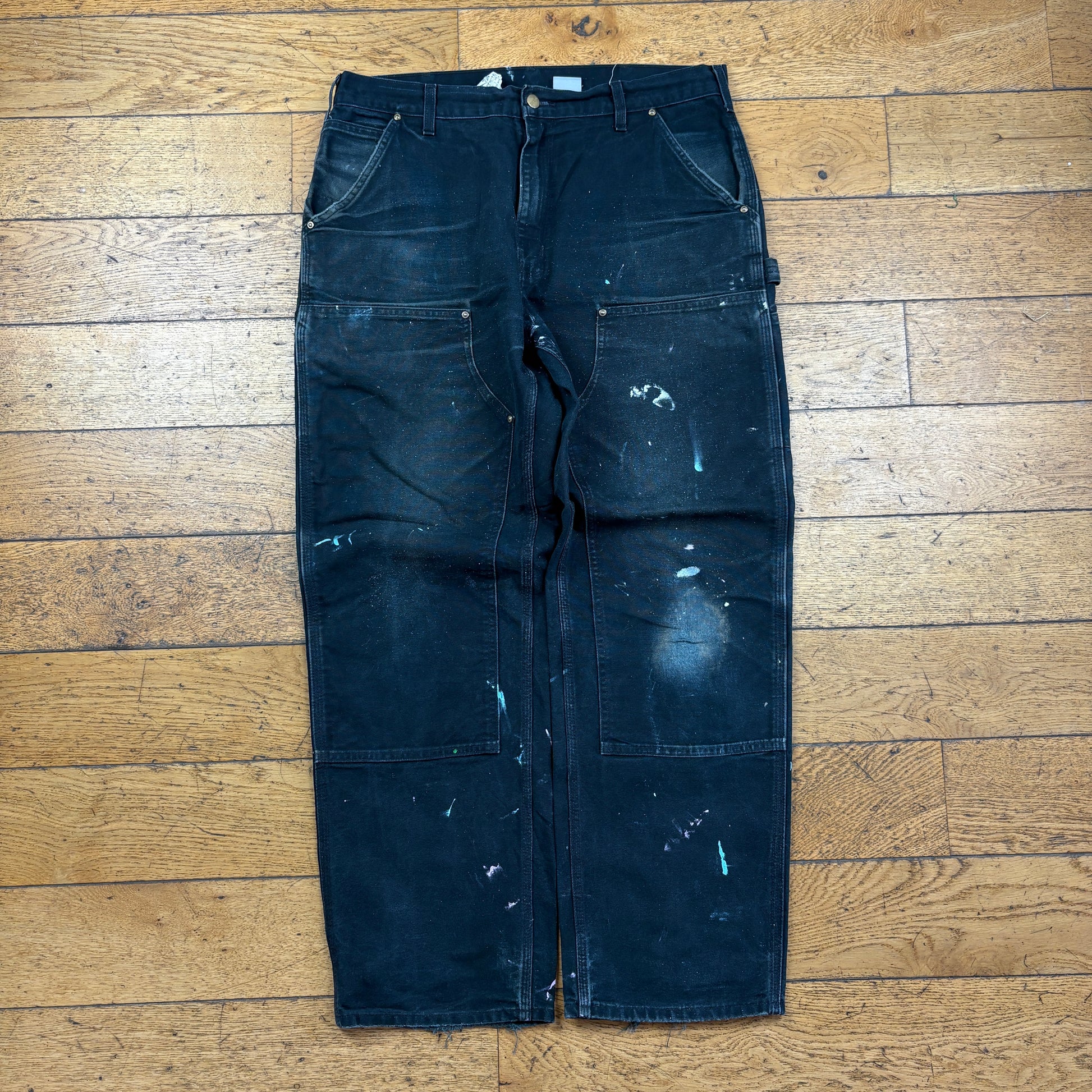 Vintage Carhartt Black Double Knee Workwear Carpenter Baggy Trousers - 36